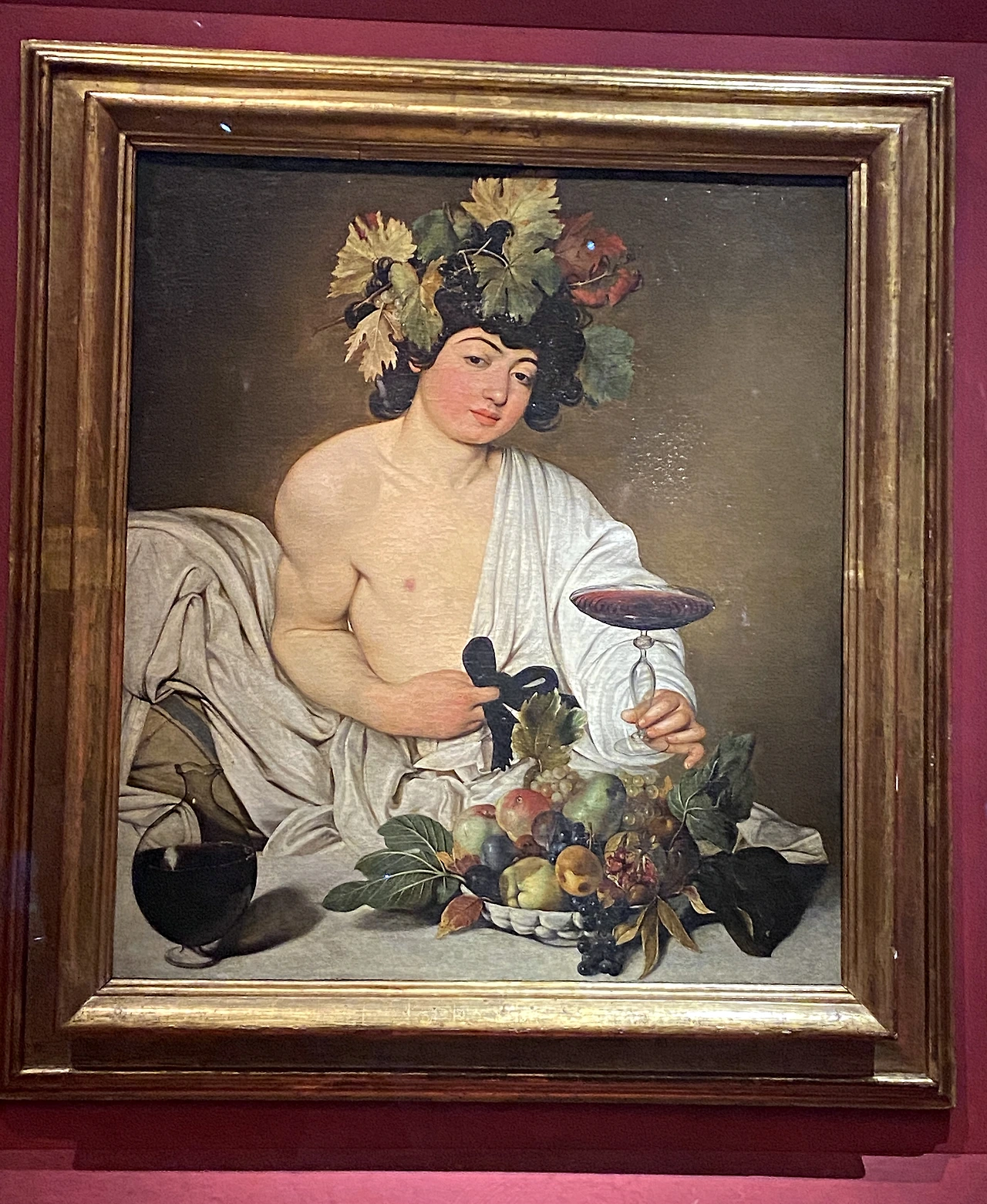 14. 카라바조(Caravaggio)의 바쿠스(Bacchus)이다. 바쿠스(술의 신)는 수많은 화가들에 의해 그려졌으며, 보통의 아름다운 용모를 자랑하는 이상형의 남자로 표현되었다. 포도주와 다산의 로마 신이 포도밭에 기대어 왼손에 포도주 잔을 들고 있는 바로크 회화의 걸작이다. 빛과 그림자의 놀라운 사용과 강렬한 감정적 영향으로 유명하다.