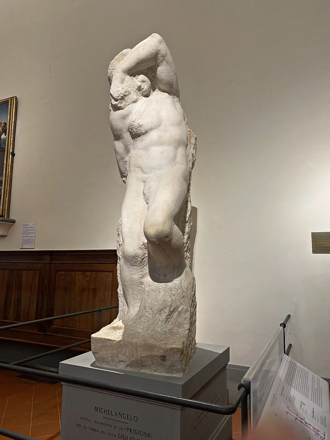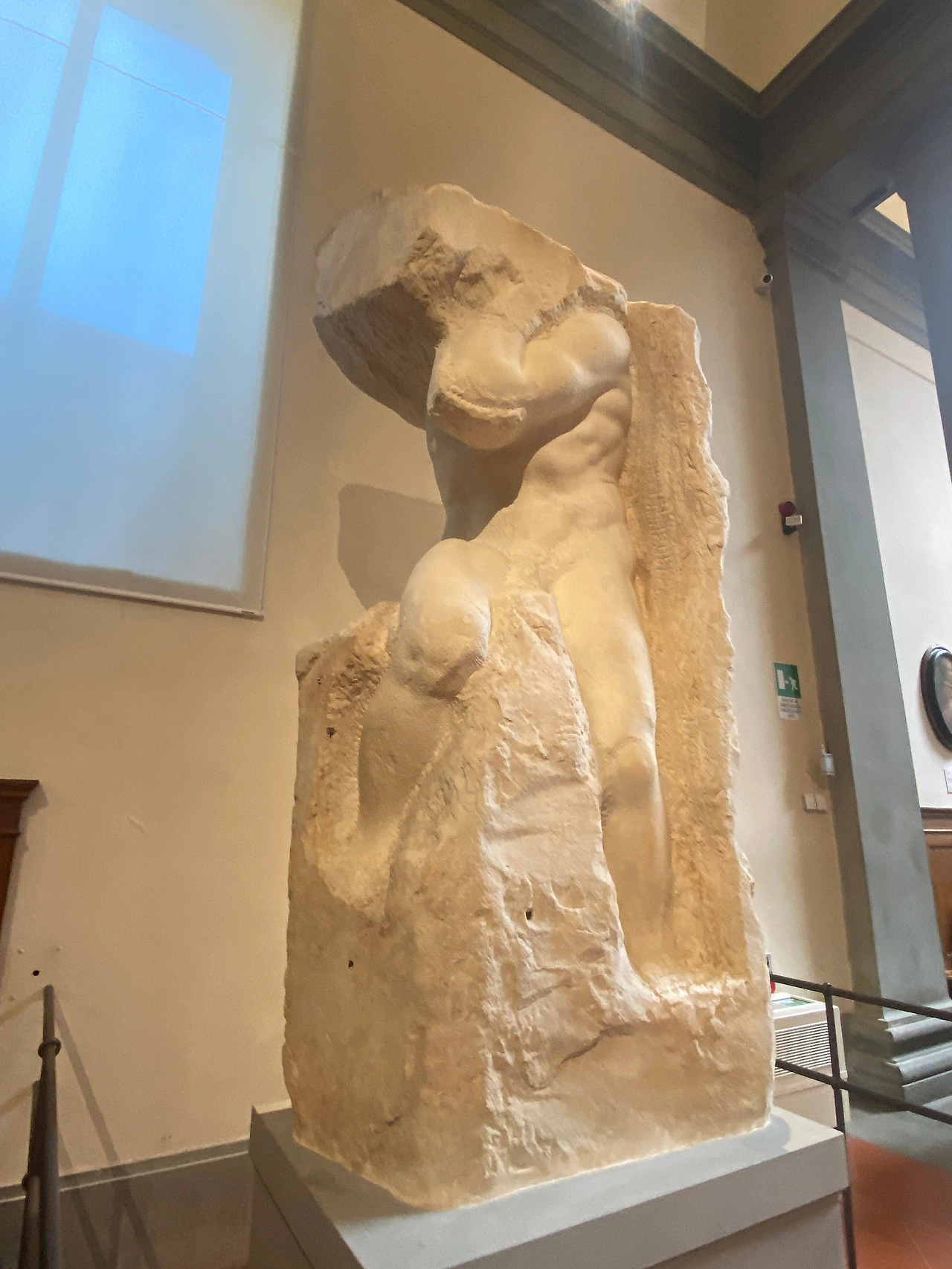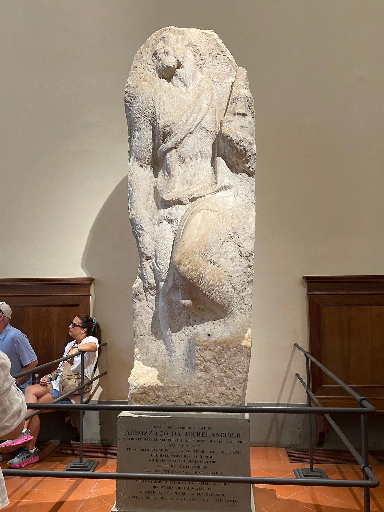 미켈란젤로의 미완성작도 있다. 성 마태오 상과 노예상에는 아직 조각되지 않은 대리석 부분이 있는데 그 부분에서 미켈란젤로의 손길이 느끼는 것 같아 더 감동적이다.