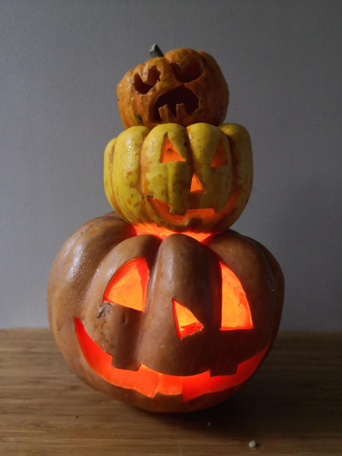 코비드 19와 함께 귀신들도 자가 격리가 되었다. 우리끼리 무엇을 할 수 있을까? 집 안에 솜으로 된 거미줄을 치고, 호박모양 장식 줄을 여기저기 달았다. 아이들과 인터넷에서 박쥐 이미지를 검색해서 프린트했다. 벽과 천장에 오려 붙인 박쥐들이 날아다니고, 실에 매달린 거미가 천장부터 내려와 있다. 며칠 동안 거실에서 허리를 굽히고 다녀야 했다. 마트에 가서 주황색 호박도 여러 개 샀다. 예전에 농장에서 어린이를 대상으로 하는 할로윈 행사에 참여한 적이 있다. 아이들이 너무 어려서 커다란 호박 두 개를 나 혼자 팔이 떨어지도록 팠던 기억에, 작은 것들로만 고르고 싶었다. 지난번에 팠던 호박을 실온에 두었더니 속에 곰팡이가 가득 꼈었기에, 이번엔 냉장고에 오랫동안 보관했다. 냉장고를 열 때마다 아이들의 호박이 까꿍 거린다.