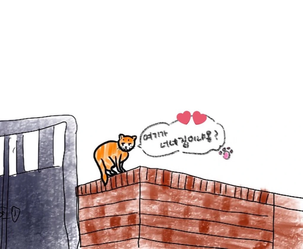 퇴근하고 집에 오는데 대문 옆 담장에 노랑이가 앉아 있었다. 첨엔 대문 위 넓고 평평한 곳에 누워 귀만 보이길래 냐옹냐옹 했더니 얼굴을 쓱 내밀더니 이내 담장으로 툭 내려와 앉았다. “저기 안쪽 2층이 내 방이니까 놀러 와.”라고 했더니 꼬리 팡팡 치는 것이 알았다는 거겠지. 꼭 놀러 와.