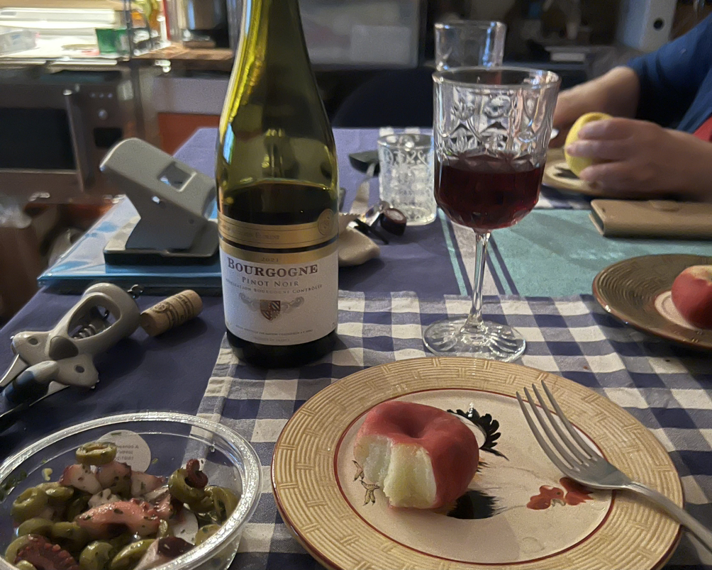 우리는 어제 남은 와인 한잔씩을 마시며 인사를 나눈다.