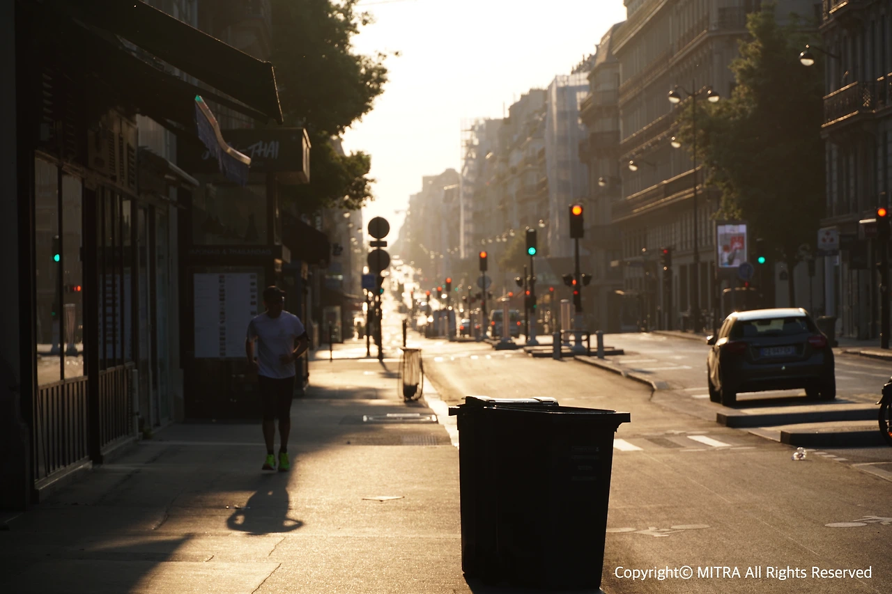 이제 막 태양이 뜨는 파리의 아침을 카메라에 담는다.