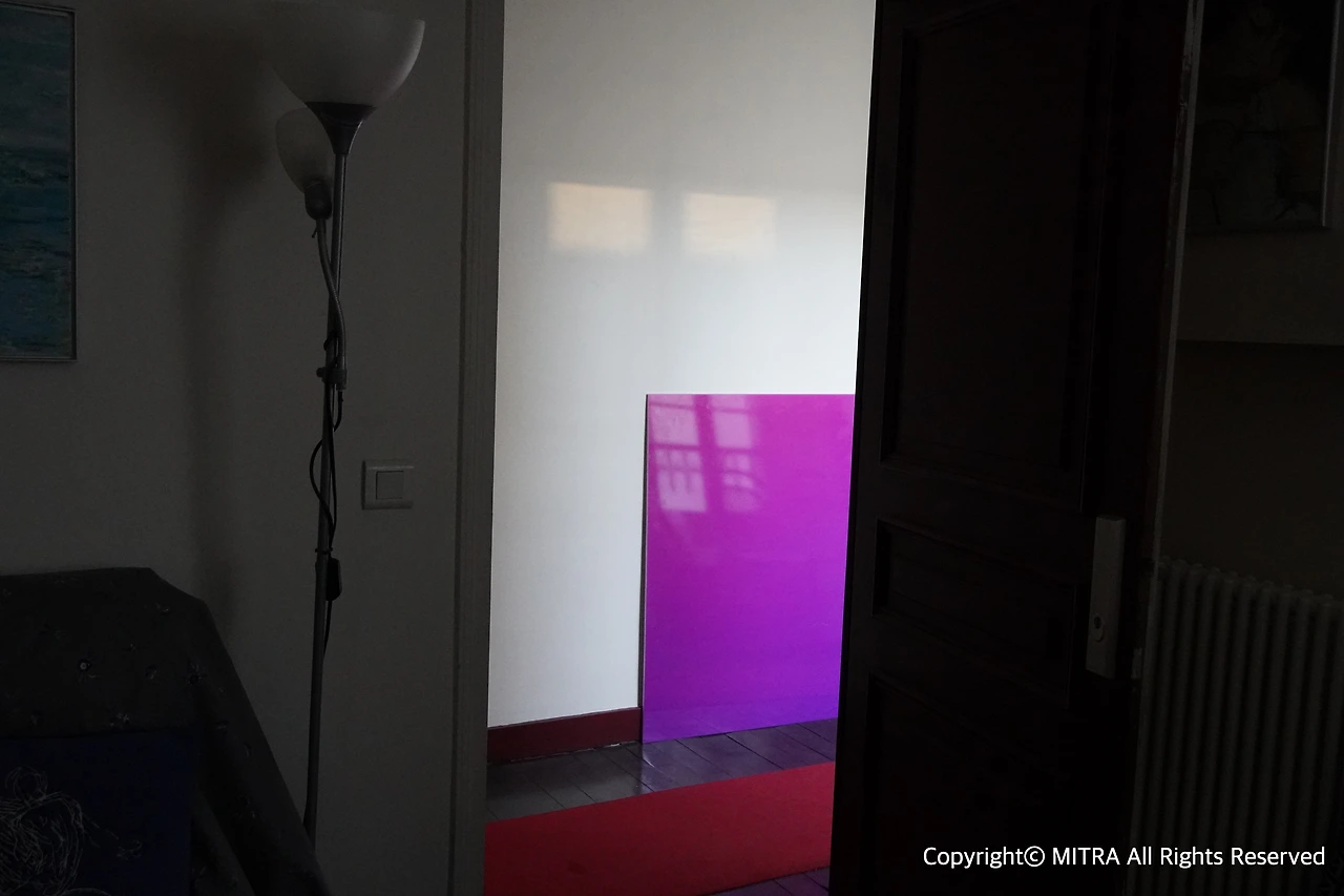 백화점 앞에 큰 보라색 아크릴판 2개가 버려져있다.