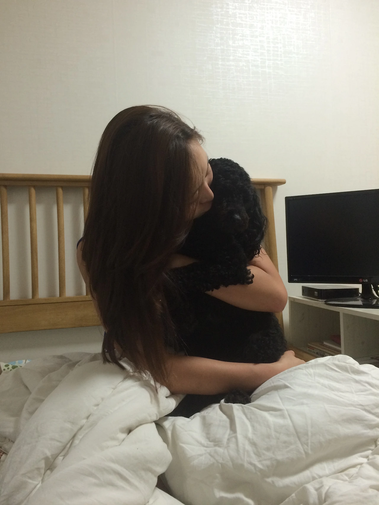 그랬더니 마음이 놀랍도록 잔잔해진다. 평생을 내 손길과 눈길을 기다리는, 내가 전부인 이 따뜻한 생명체를 꼭 끌어안으니 정말 엄청나게 위안이 된다.