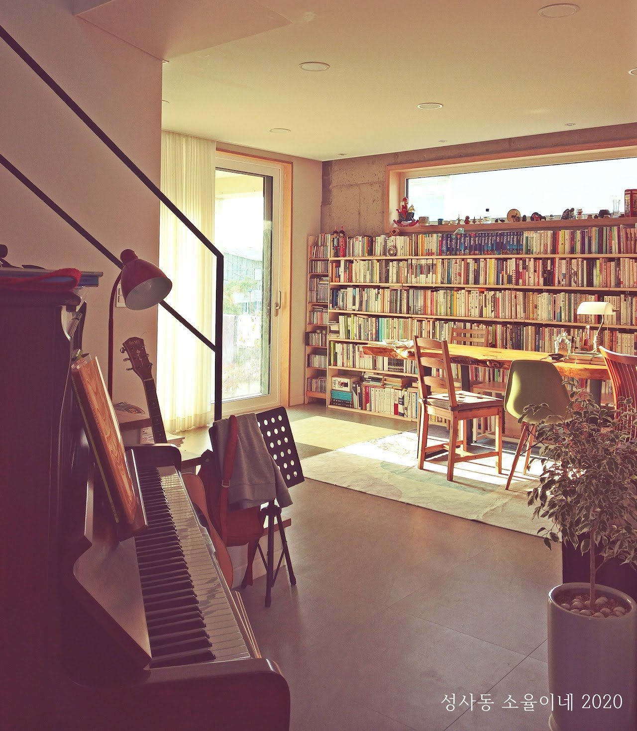 예상했던 거실의 풍경입니다. 소율이네는 이사오기 전 집에서도 거실에 책이 가득했거든요. 아침볕이 깊게 드는 따뜻한 아침입니다.