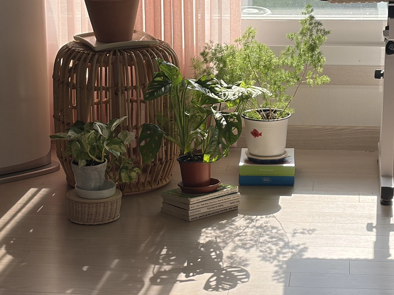 현재 우리 집 거실에는 지난 내 생일에 선물 받은 화분과 도자기 전시를 위해 분재한 화분이 있다. 나 같은 똥 손도 정성을 다하면 식물을 잘 키울 수 있는 거구나. 뿌듯한 감정이 앞섰다. 흐뭇했다. 더불어 햇살을 통과한 잎사귀의 그림자는 평온한 무드를 더해주고 있었다.