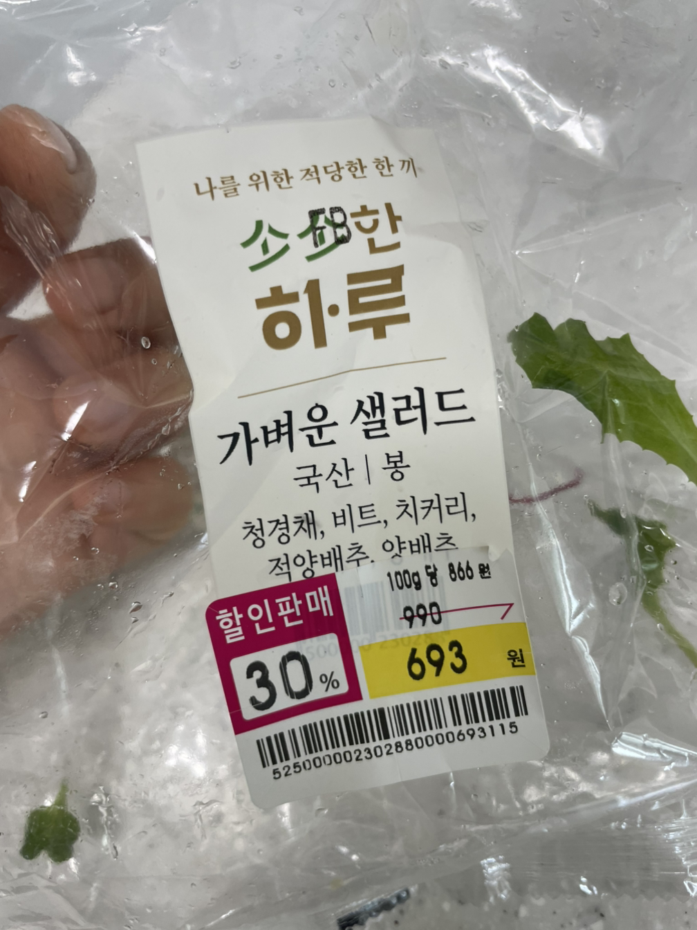 오늘은 점심을 야채와 함께 먹었다. 마트에서 파는 '소소한 하루 샐러드'가 마음에 든다. 야채는 사두면 항상 썩어 버리기가 일이었는데, 이건 양도 딱 한 끼이고 신선하다.