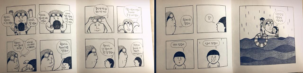 "할머니, 할머니, 나 소 그렸어." / "아이고, 잘 그렸네."