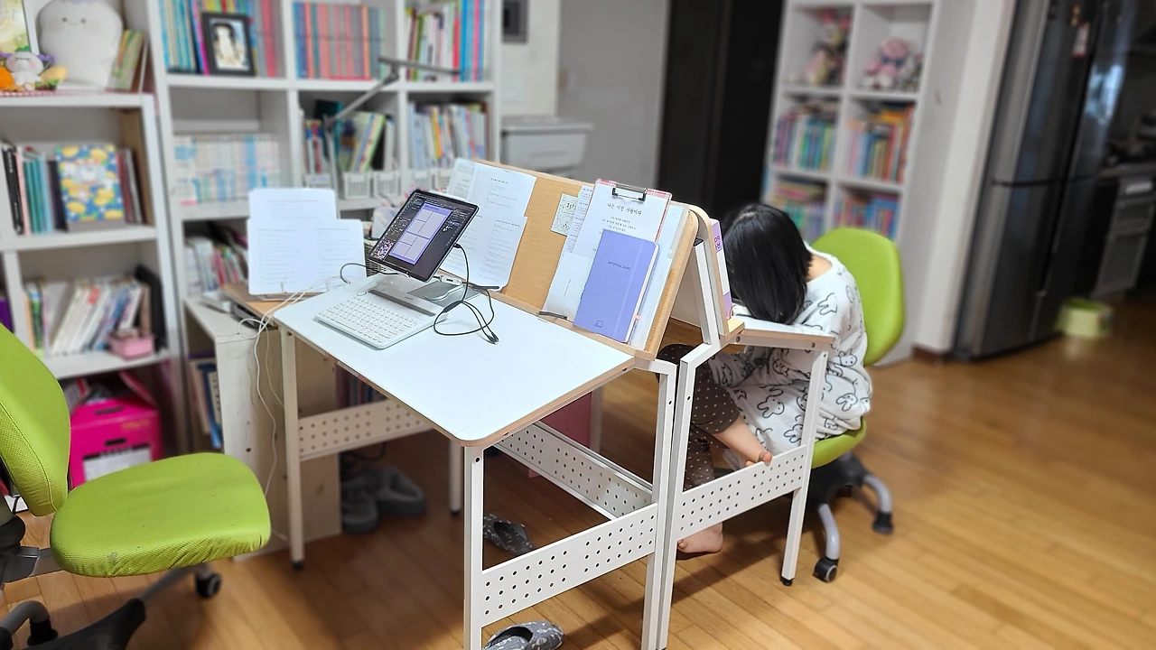 "엄마, 열심히 해. 잘못하면 나한테 따라 잡혀. 공부 끝나면 내가 그릴 거야."