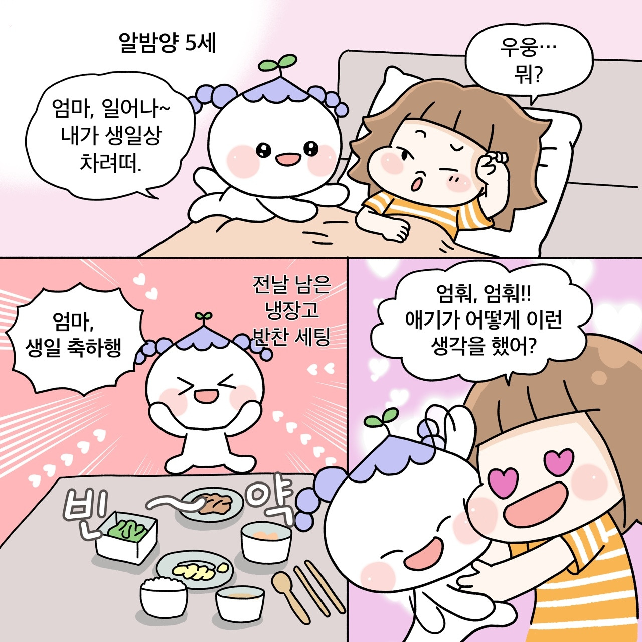 다섯 살 알밤양의 첫 서프라이즈였다.