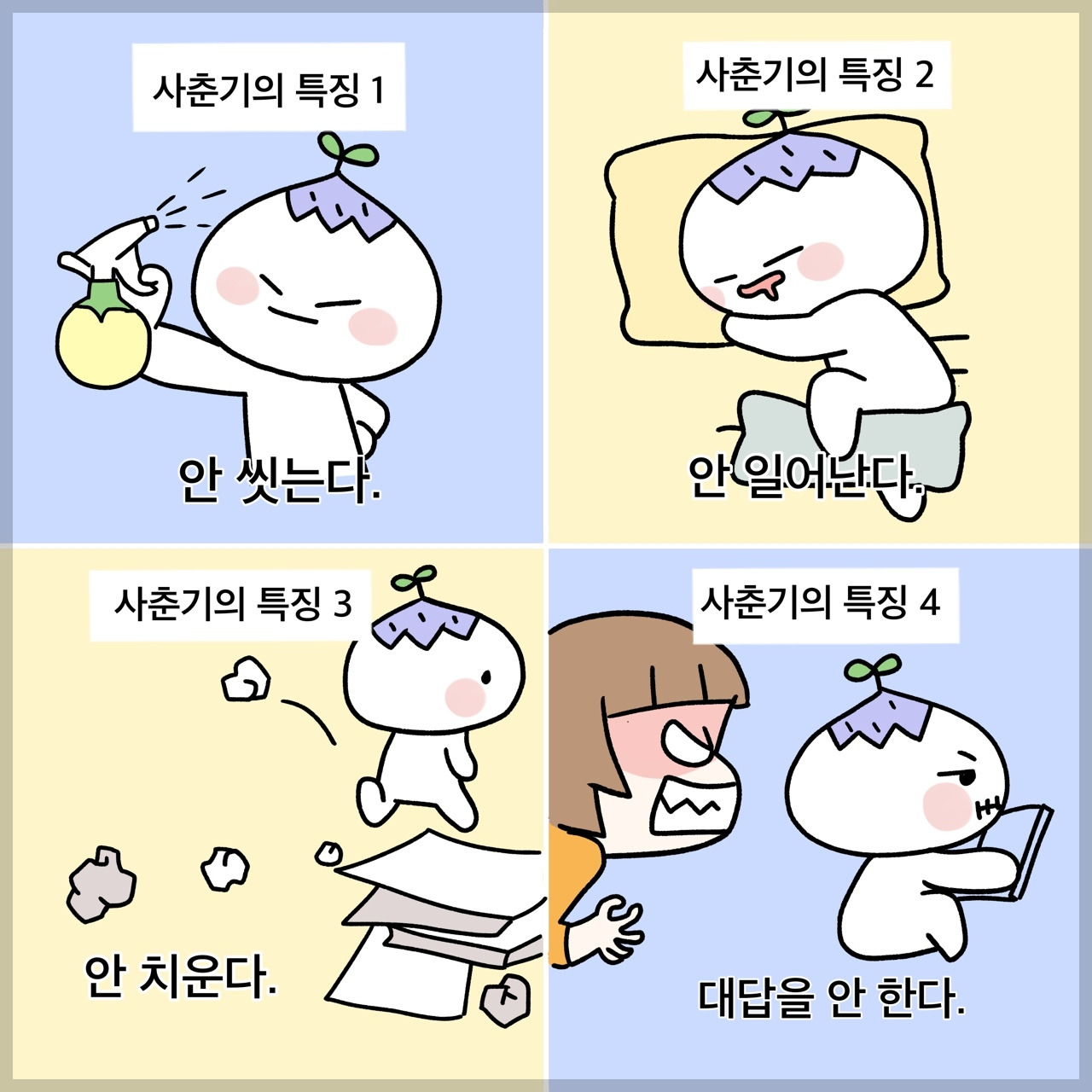 "뭐? 말도 안 돼! 그럼 사춘기가 지나도 달라지지 않는단 말이야? 무한반복? 네버엔딩 지저분?"