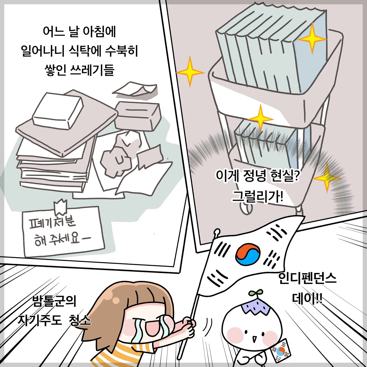 이것은 인간 본성의 법칙인가? 양육의 문제인가? 깔끔하면 좋지만 더러워도 크게 문제가 없어서 놔두는 것인가? 아니면 모친을 믿어서인가? 그들은 그들의 미니미를 키우는 막중한 임무가 주어져야 변화할 것인가? 말로써 사람이 바뀌는 건 코딱지만큼도 안 된다. 수년 입아프게 잔소리했는데 결과는 효율성 제로다. 아쉬운 놈이 장 담근다고, 하루 중 가장 오래 집에 머무르는 내 속 편하게 그냥 치워줘야 하는 것인가? 정리 컨설턴트 곤도 마리에에게 인생이 빛나는 정리의 마법 정리 코칭을 받아야 하나? 아니면 성인이 되자마자 각자도생하게 내쫓아야 하나? 발가락 하나 움직이는 것도 내 의지가 필요한 일인데 어떻게 해야 정리, 정돈을 잘하는 새나라 일꾼으로 키울 수 있을까? 데이터 수집이 간곡히 필요한 시점이다. 정리정돈 꿀 양육팁이 있으면 아낌없는 댓글 부탁드린다.