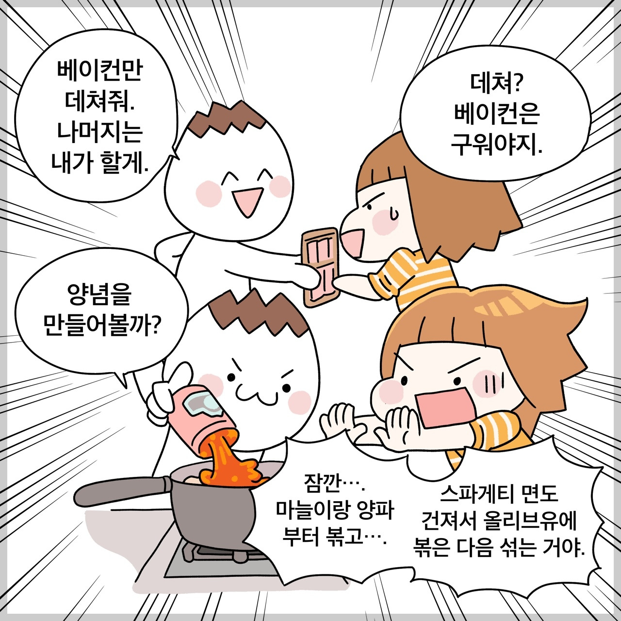 그러니 남편님아, 왕년의 요리 실력을 유지하려면 가뭄에 콩 나듯 설치지 말고 자주 해주세요. 이왕이면 준비도 직접 해 주세요.
