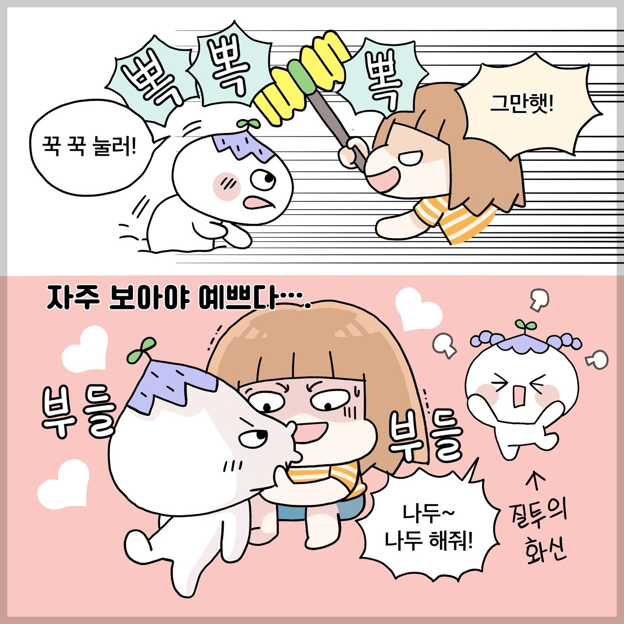 외돌이었던 알밤양은 꿈쩍 않고 뒹굴거리다 보니 엉덩이 빵실 빵실한 집순이가 되어간다. 사춘기가 되면서 MBTI도 변했는데 밤톨군은 INFP에서 ENFP로 알밤양은 ENFP형에서 INFP형으로 서로 바뀌었다. mbti는 심리상태에 따라서 결과가 달라질 수 있다고 한다.