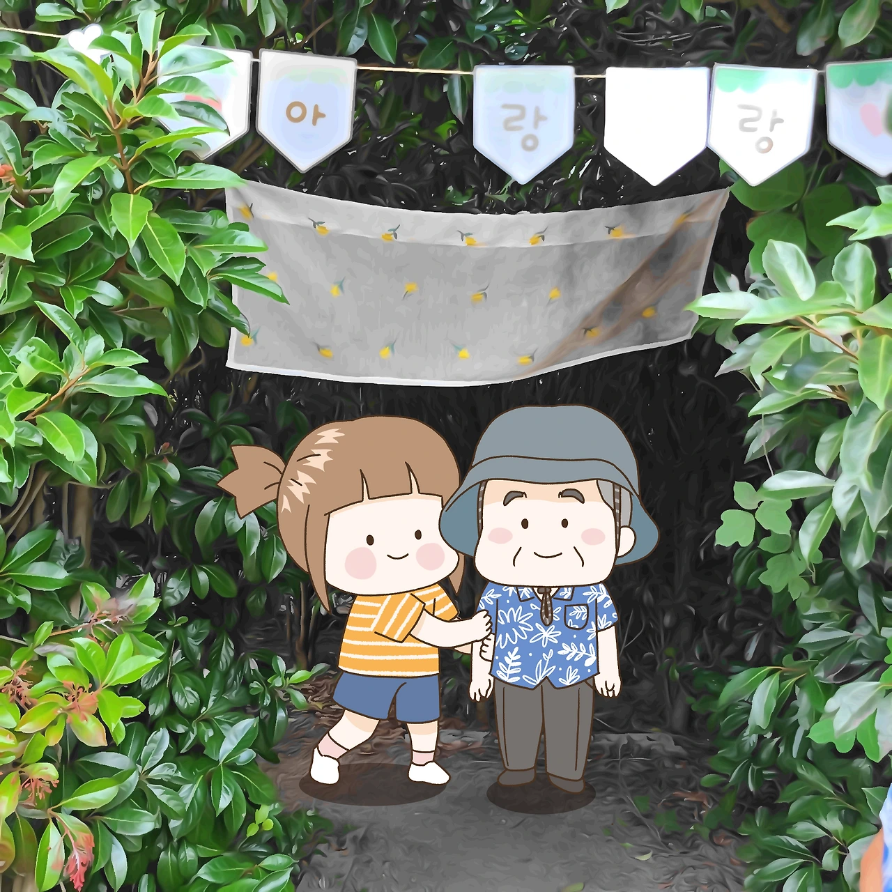 22년 여름 알밤양, 밤톨군, 일돌남편과 제주 한 달 살이를 했다. 보름은 서귀포 남원읍에, 남은 보름은 협재 옹포리에 숙소를 잡았다. 남원읍에서 옹포리로 숙소를 옮기고 울산에 사는 아빠를 초대해 3박 4일 함께 하기로 했다. 아빠가 오는 당일 오전에 부지런히 제주공항에 마중을 나갔다. 집안 사정은 구구절절하니 뒤로 하고 친정아빠를 4년 만에 만나는 날이었다. 전화를 하니 이미 도착해 공항 정문 앞으로 나오셨단다. 저 멀리서 아빠가 느릿느릿 걸어오시는 게 보였다. 아빠는 현대자동차 근로자로 퇴직하시고 아파트 경비원으로 15년 근무하다 퇴직 후 지금은 텃밭 가꾸며 소일하시며 지내신다. 오랜만에 만난 아빠는 나이가 팍 들어 보였다. 걸음걸이도 느려지고 발밑을 끌듯이 천천히 걸었다. 그동안은 염색을 해서 몰랐는데 백발의 아빠를 보니 진짜 할아버지가 되었구나 싶어 눈물이 날 것 같았다. 그런데 아빠가 제주에 어울리는 티셔츠와 평소 쓰지 않는 모자를 쓰고 계신 게 아닌가. 제주에 오려고 장만하셨단다. 전화할 때 무심한 듯했지만 사부작사부작 준비하며 이 날을 기다리셨던 같아 또 코끝이 찡해졌다.