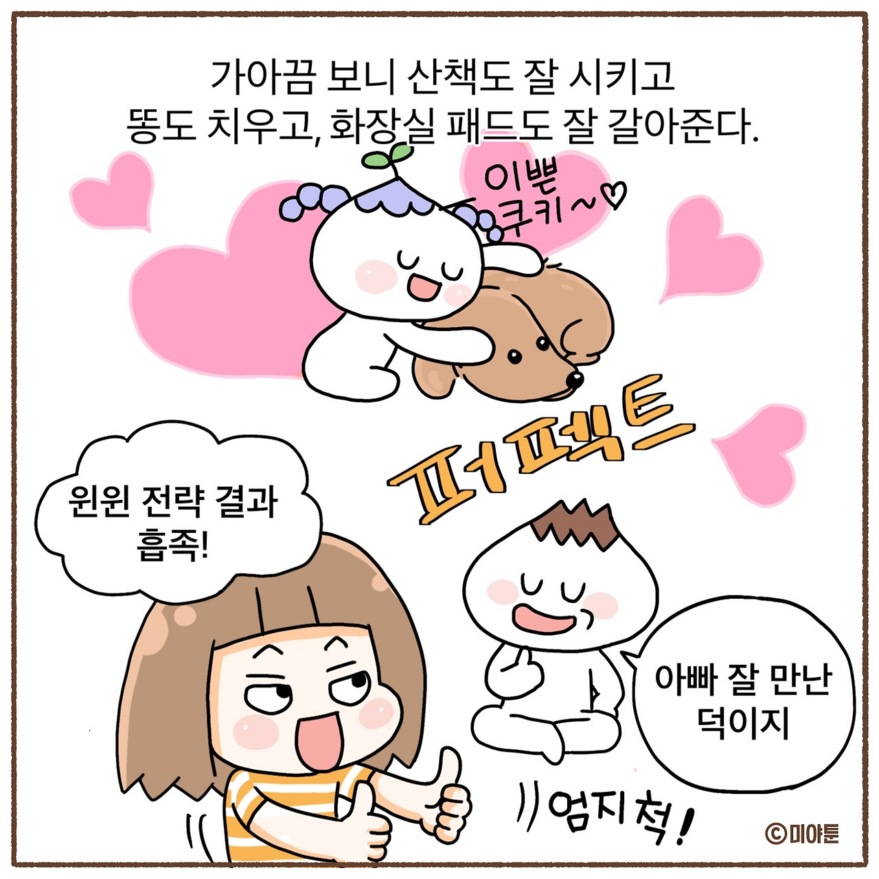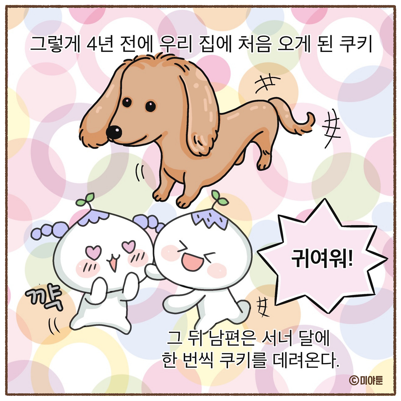 주인의 사랑을 듬뿍 받는 쿠키와 몇 달에 한 번 만남은 아쉬운 대로 아이들의 욕구를 만족시켜 주었다. 일돌 남편 덕분에 울 아이들 강아지 시즌이 잘 지나가고 있다.