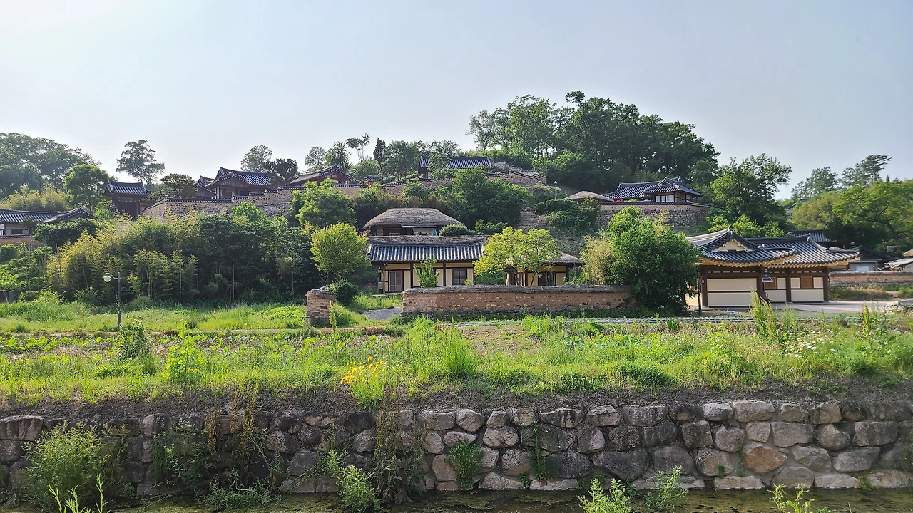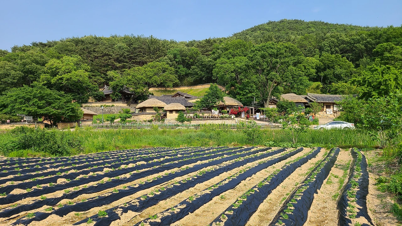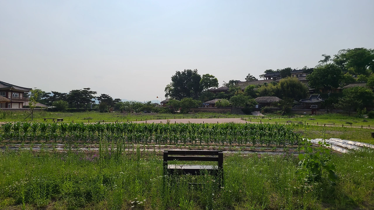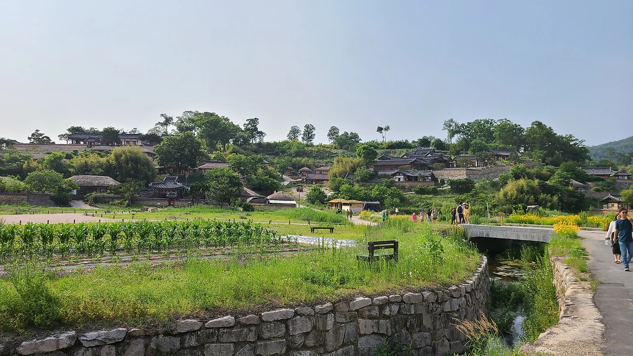 경주를 6년만에 왔다. 시어머니 가 돌아가시고 몇 년은 매년 제사때 내려오면서 가족여행을 했다. 통영, 해남 땅끝마을, 전주 한옥 마을을 가기도 했다. 일주일 정도 조금은 길게 여행하는 맛이 이때 들렸다. 하루 이틀은 24시간 좁은 공간에 함께 움직이는 게 힘들었지만 3일째부터 손발이 척척 맞아들어가고 여유롭게 즐기는 여행이 재밌었다. 이번엔 경주에 숙소를 잡고 아빠를 모시고 3형제가 함께 했다. 첫날 부어라, 마셔라 이야기꽃을 피우고 둘째날은 우리 가족과 아빠만 하루 더 함께 보내기로 했다. 다음날 언니,오빠와 헤어지고 우리는 경주 양동마을을 구경하기로 했다. 6년 전에 경주에 왔을 때는 불국사, 첨성대, 경주국립박물관 등 경주 랜드마크 위주로 돌아다녀서 이번에는 번화하지 않은 곳을 가고 싶었다. 먼저 동궁과 월지부터 들렸는데 한여름 땡볕 날씨에 그늘 없는 곳을 걷는 게 힘들어 금방 나왔다. 동궁에 있는 넓고 수려한 월지는 역사책, 역사 소설에서 많이 묘사되어 직접 보고 싶었다. 실제로 봐도 멋졌지만 되새길 시간이 없어서 아쉬웠다. 양동마을에 도착해 까페에서 아메리카노를 마시며 수분 공급을 한 다음 매표소를 지나 마을 안으로 들어갔다. 마을 풍경이 파노라마 화면처럼 넓게 펼쳐졌다. 와, 예쁘다! 그림같은 풍경이다. 이렇게 예쁜 시골마을이라면 한 달, 아니 1년정도 살면 좋겠다. 양반가문이 모여 살았으니 명당이겠지만 풍수를 몰라도 산세와 마을 기운이 좋은 것이 느껴진다.