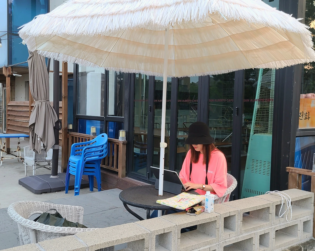 스쳐 지나가면 하나도 기억이 안 나 얼른 메모를 하고 숙소에 와서 검색을 하니 어저구가 아니라 어저귀이다. 모두 방으로 올려보낸 뒤 1시간만 있다 들어가겠다고 하고 1층 까페 밖 테이블에 앉아서 글을 쓴다. 어둑어둑해지는 바닷가가 보이는 곳에서 모기를 잡으며 글을 쓰는 기분이 꽤 괜찮다. 여행도 함께 또 따로가 필요하다. 내일은 어머니 10주기 제사를 지내러 부산으로 간다. 오랜만에 친인척 방문일정으로 바쁜 주말을보내는 중이다.