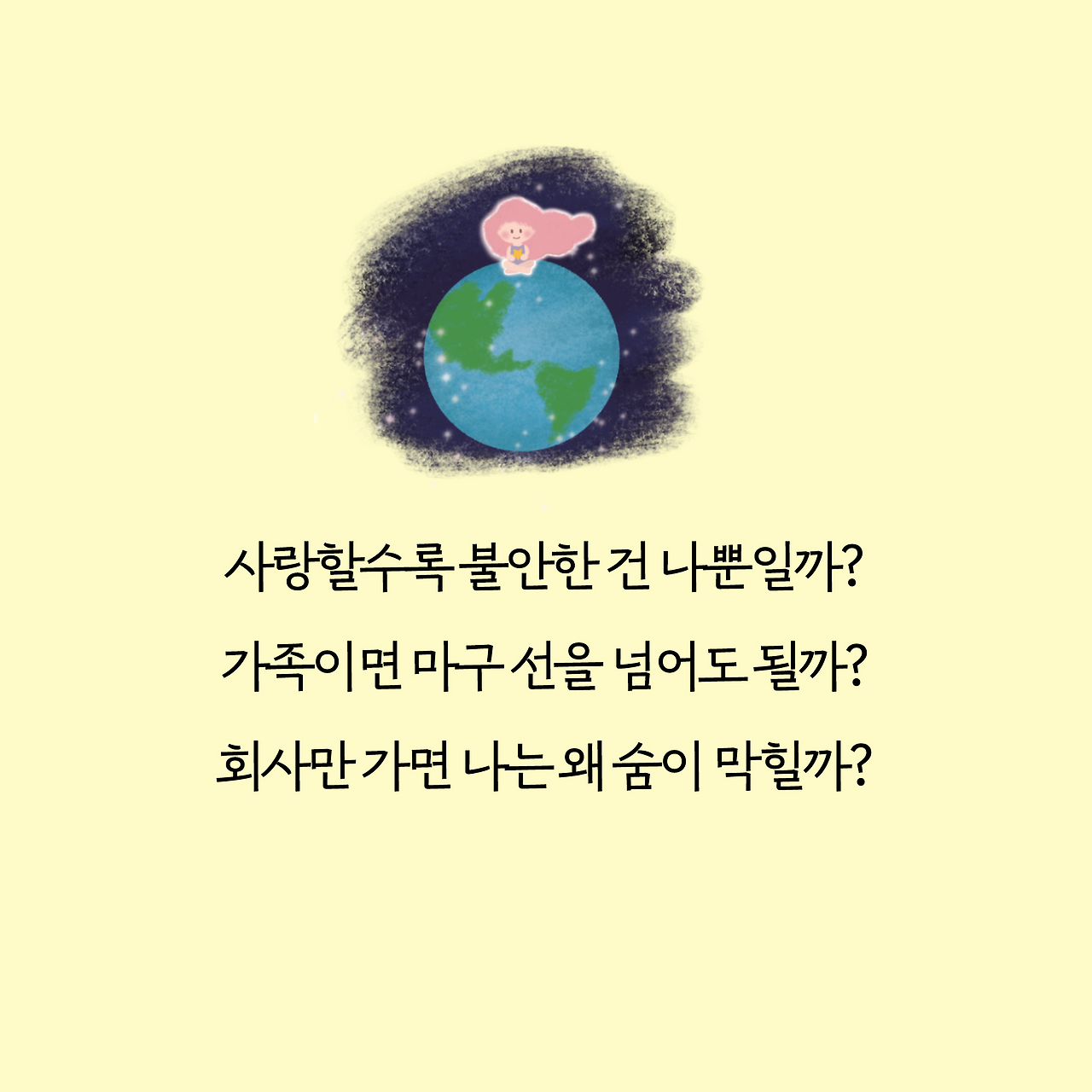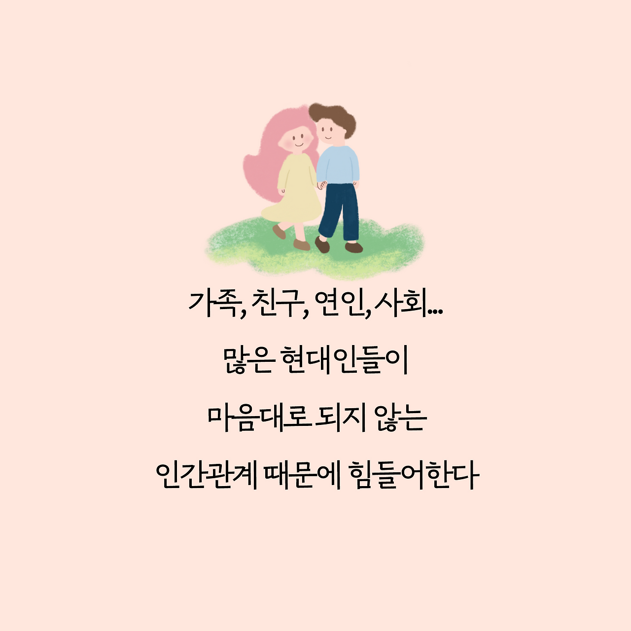 첫 번째 에세이 <나는 왜 남의 눈치만 보고 살았을까> 저자인 최리나 작가는 '심리상담가'라는 본업의 전문성을 살려 두 번째 책은 사람들의 마음을 살필 수 있는 자기 계발서를 내겠다고 마음먹었다. 그녀의 첫 에세이 카드뉴스 일러스트를 연작으로 그리면서 그녀의 삶, 생각, 가치 생각 등 많은 것을 알게 되고 누구보다 통화를 많이 하는 사이, 힘들 때 의지하는 사이가 되었다.