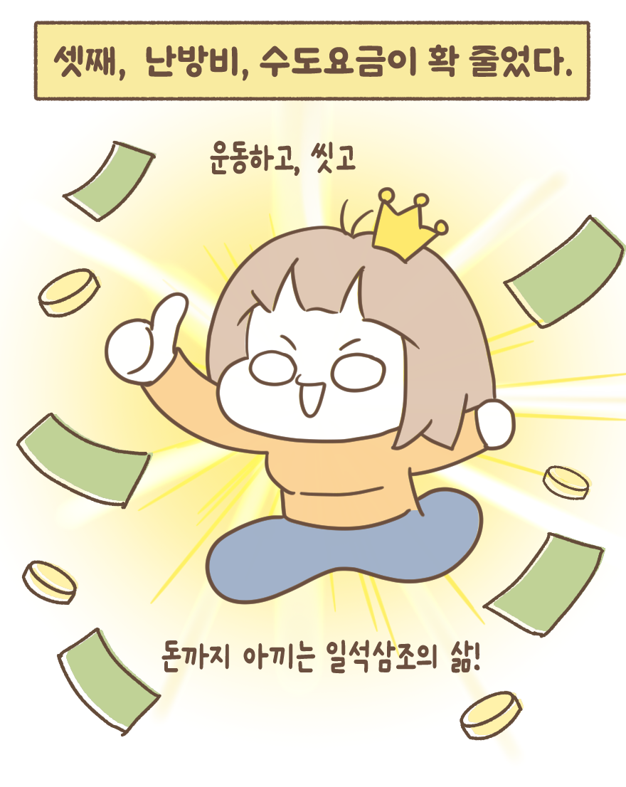 셋째 집에서 덜 씻으니 난방비, 수도요금이 덜 나온다.