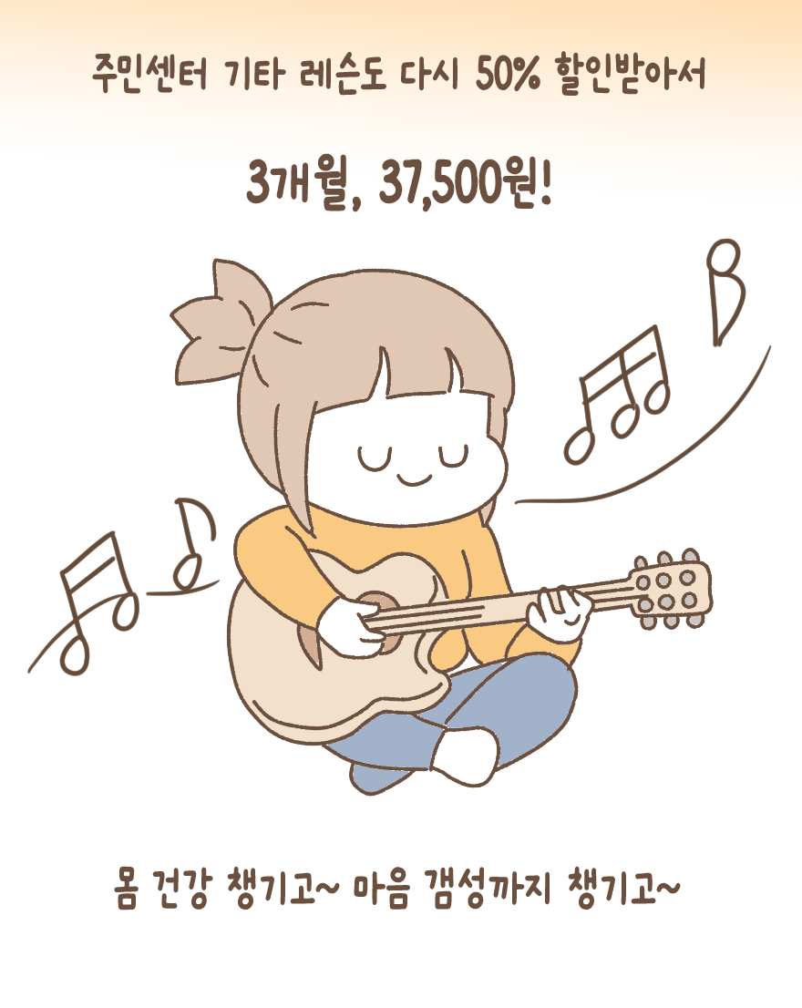 - 문화 강좌:기타, 요가 등 주민센터 수업 50% 할인