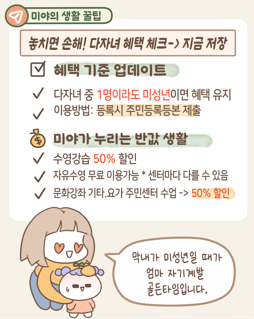 다둥이, 다자녀 맘들 혜택 잘 챙겨서 쓰세요.