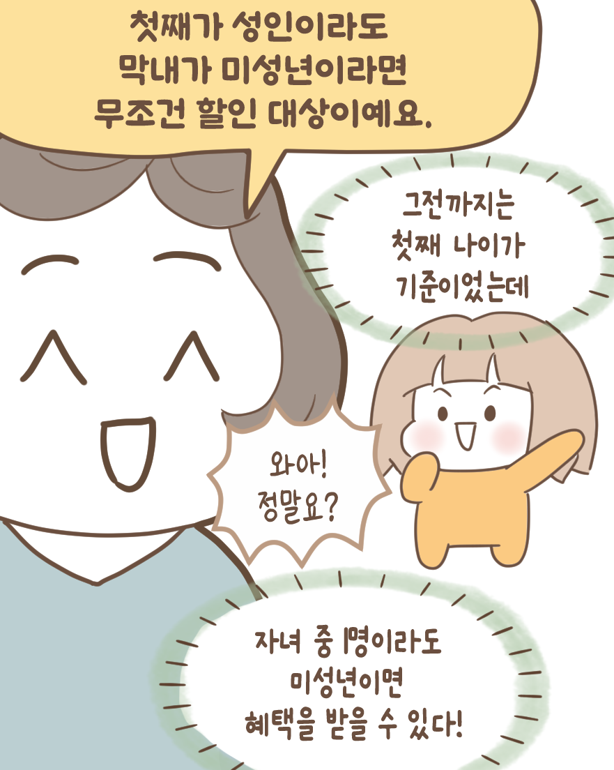 - 변경: 자녀 중 1명이라도 미성년**이면 혜택 유지!