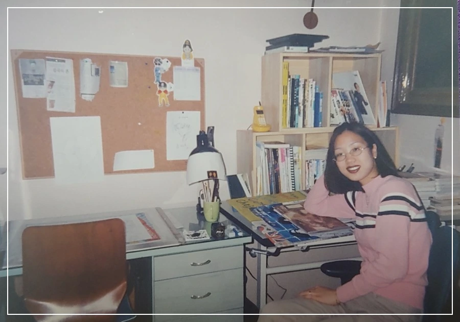 남편과 돈을 합쳐 구한 연남동 반지하 방 두 칸, 우리 첫 신혼집이다. 사진첩에서 한 장의 사진을 발견했다. 필름으로 인화한 명도가 어두운 사진 속 내 모습이 앳되어 보인다. 스 물 네 살이니 어린 게 맞다. 내 모습 다음으로 책상이 눈에 들어온다. 저 책상 둘 다 내가 울산에서 쓰던 책상이다. 왼쪽 그린 색깔은 아빠가 처음으로 아파트에 입주하며 내 방에 들여준 책상이고 내가 앉아 있는 책상은 3년 동안 다닌 회사 퇴직 선물로 부서에서 사준 제도용 책상이다. 저 책상들을 울산에서 이고 지고 자취방에서 신혼집까지 가져왔다. 창문 밖 왼쪽이 빌라 출입구라 문을 열면 사람들의 발이 보였다. 빌라 사람들은 지나다니며 문이 열려 있는 방을 흘끔흘끔 보았는지 계단에서 마주치면 "그림 그리시나 봐요?"하고 신기해했다.