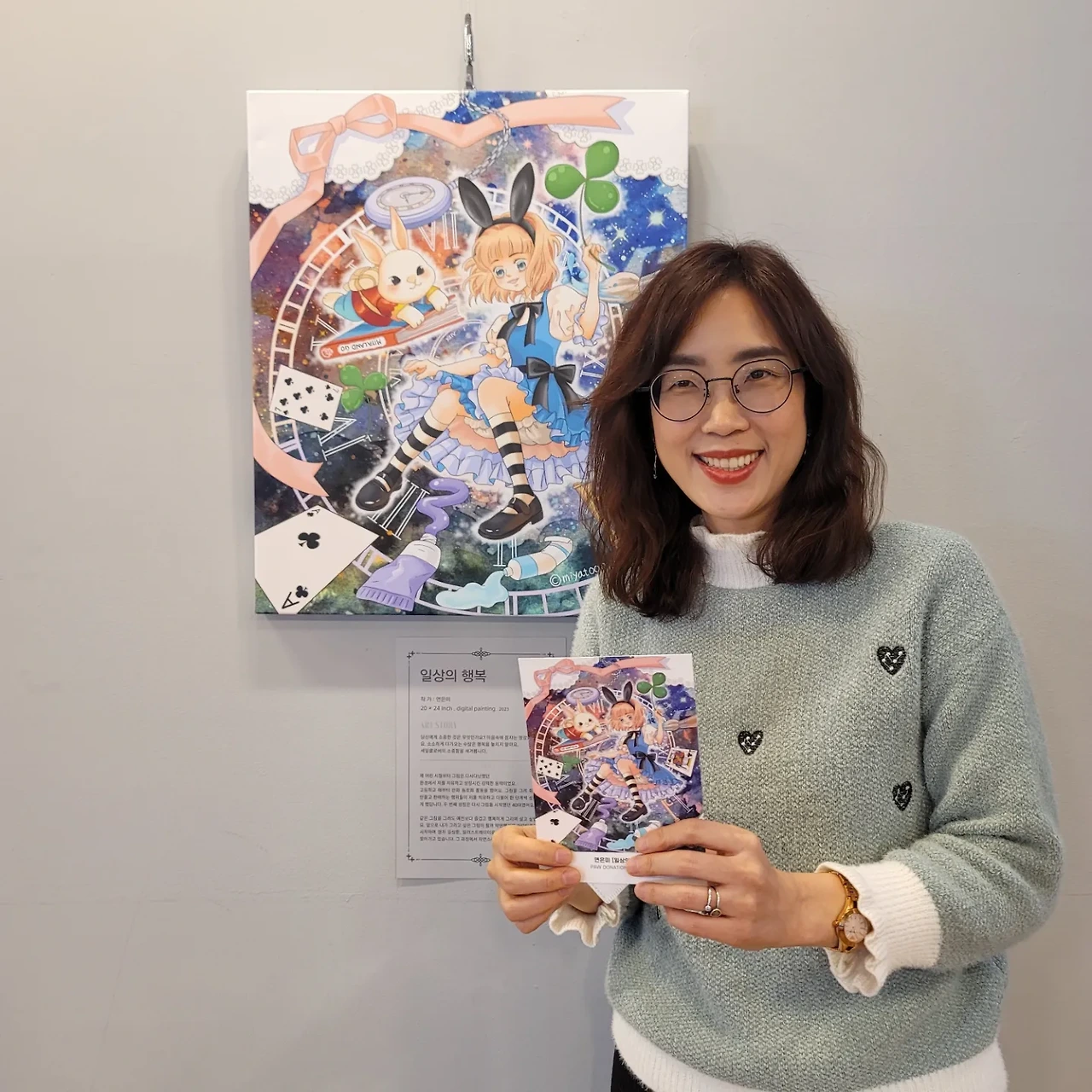 서울여성문화회관 6층 뜨락 갤러리에서 열린 전시회의 제목은 <래빗런, 소녀를 부탁해>이다. 작가들이 그림으로 성장하고 치유한 스토리를 그림에 담았다. 내 안의 꿈을 가진 소녀와 현재 어려운 환경에 있는 소녀를 응원하고 용기를 주는 전시회이다. 작가들의 작품, 소량의 굿즈 판매액은 전액 <따뜻한 하루> 단체에 기부할 예정이다.