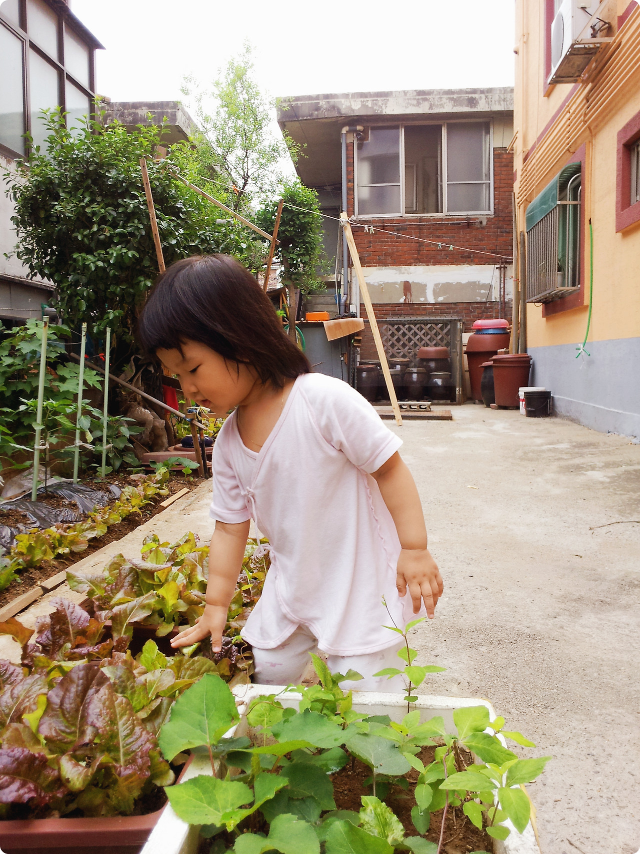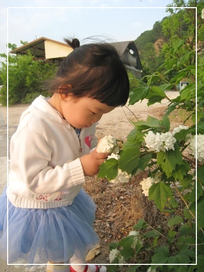 이제 아장아장 잘 걷기 시작한 두 살배기 딸을 데리고 근교로 여행 갔을 때다. 아이의 앙증맞은 몸이 안테나가 되어 보이는 모든 것을 만지고 냄새를 맡는다. 꽃도 나무도 다 신기하다.