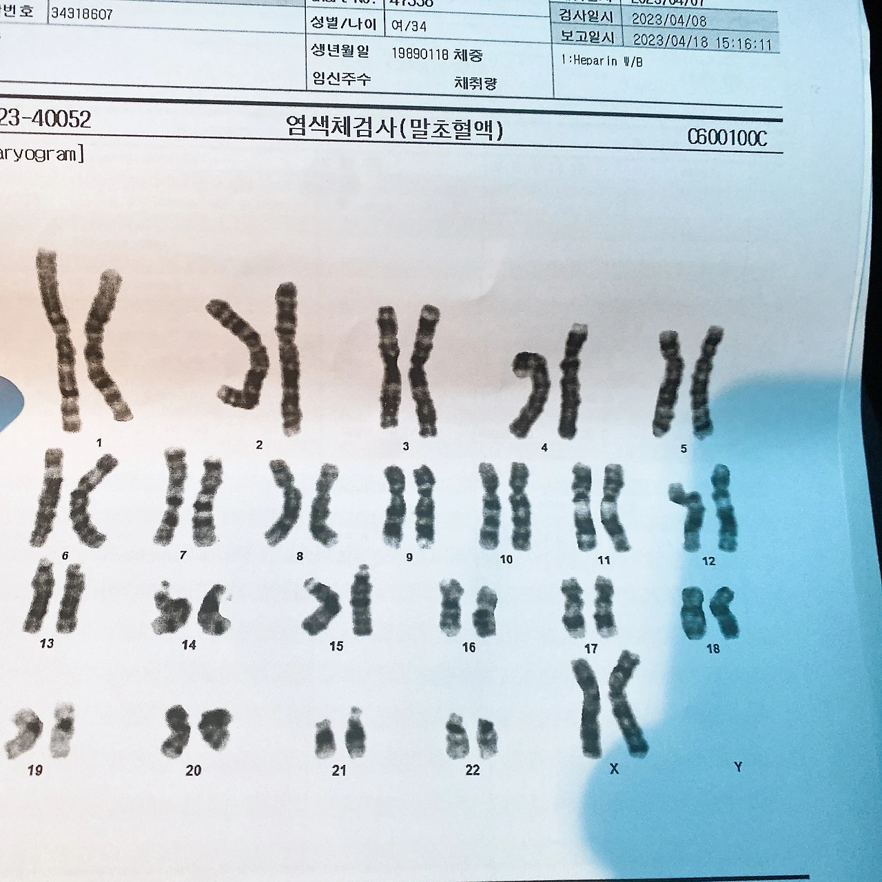 부부 염색체 검사가 정상이라 다행이면서도 한편으로는 내가 원인이라는 생각에 조금 씁쓸하기도 했다.