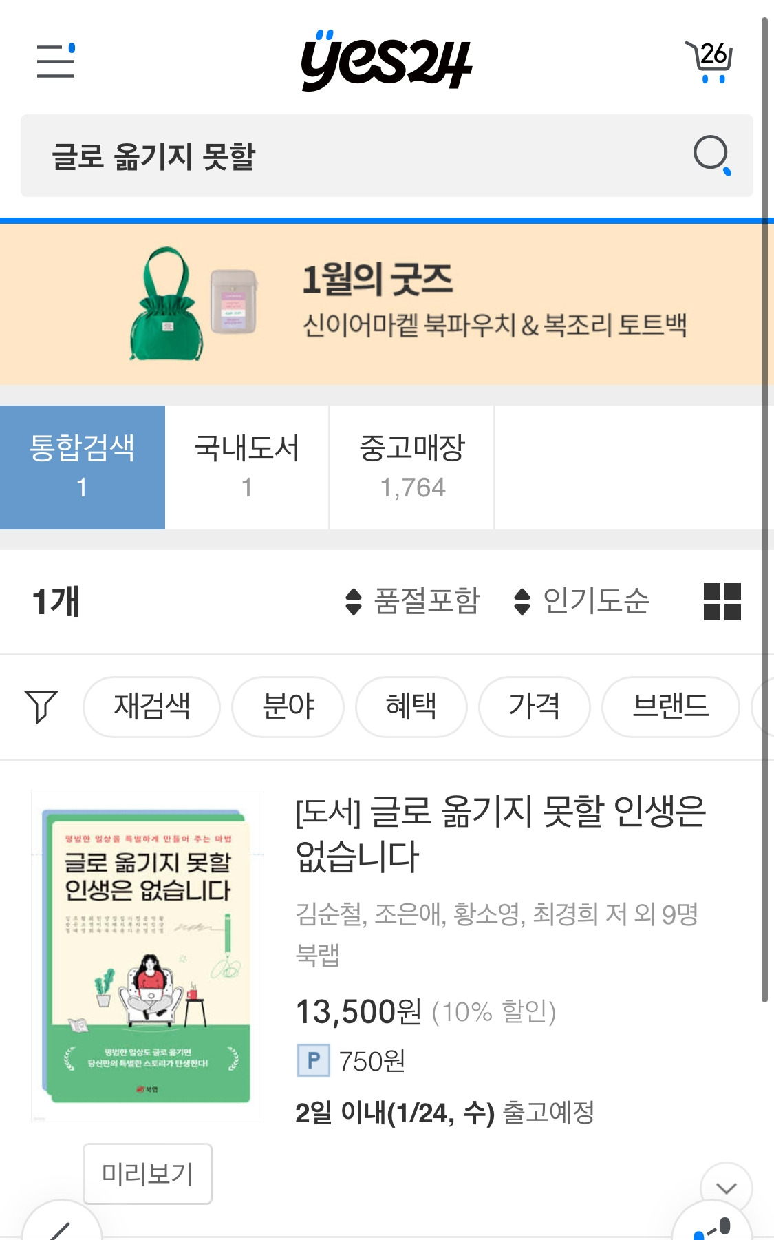 현재 yes24, 교보문고를 비롯한 온라인 서점에서 구입가능해요.