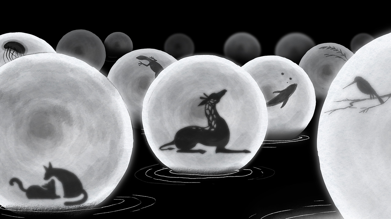 동물과 식물들이 각자의 달 안에서 잠을 청한다. 그들이 잠들면, 전구의 불이 꺼지듯 달도 빛을 잃고 검은 화면 속으로 사라진다.