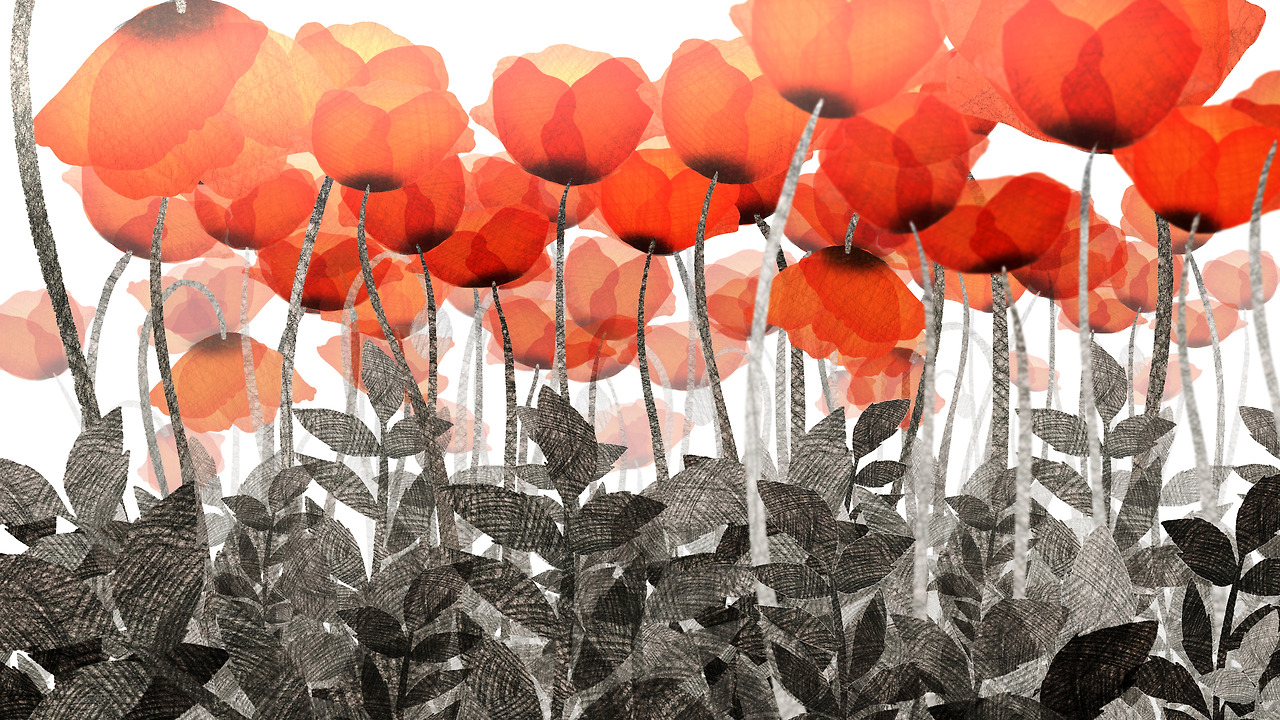 <바람>에는 여러 모양의 꽃이 등장하지만 대부분의 꽃은 '양귀비꽃'을 모델로 한다. 가느다랗게 뻗은 줄기 위에 한복 치마처럼 넉넉한 품을 품고 피어나는 붉은 빛깔의 꽃잎, 수묵화를 연상시키는 듯한 짙은 색의 꽃심은 바람을 품고 빛을 머금은 채 기이한 환상을 불러일으키곤 했다. 나는 그런 꽃에 대한 환영을 애니메이션을 통해 조금이나마 토해내고 싶었다.