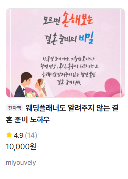 크몽 사이트에서 14개 리뷰를 보유하고 23건 판매해오고 있다. 판매금액은 만원으로 수익보다는 정말 결혼이 막막한 이들을 위해 만든 거라는 걸 알 수 있다.