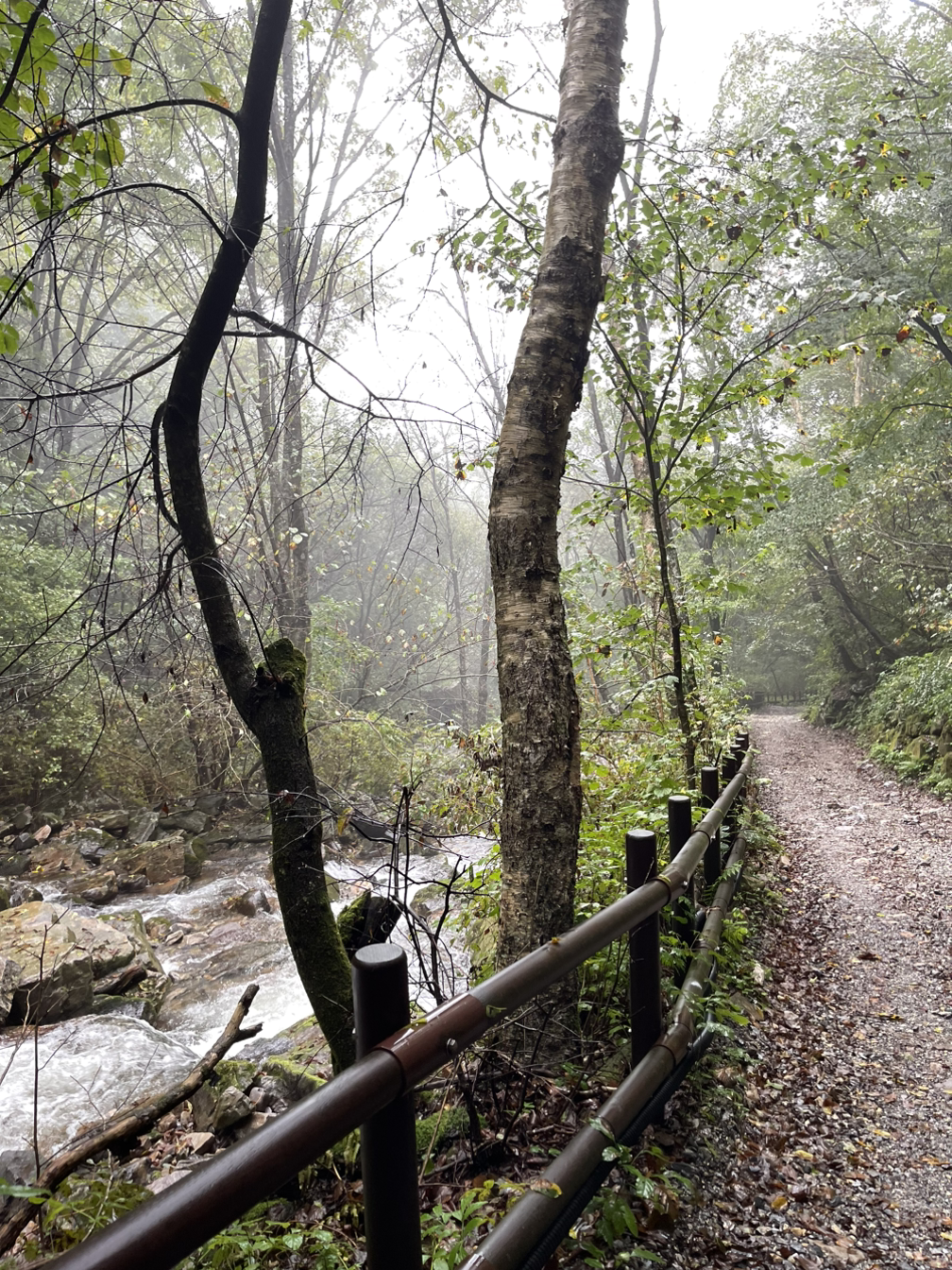 하산길의 왼쪽 편에는 계곡이 흐르고 있었는데, 비가 많이 와서 그런지 계곡이 마치 강처럼 넓어 보였고, 쏟아지는 폭포수처럼 물살이 경쾌했다. 우렁차게 흐르는 계곡 소리에 귀를 기울여 본다. 나도 모르게 스트레스가 쌓여 있었는지, 마음의 무언가가 풀어지는 느낌이 들었다. 땀과 함께 마음의 노폐물도 배출된다. 비까지 내리니 운치도 있었다. 내가 봤던 계곡 중에 가장 멋졌다.