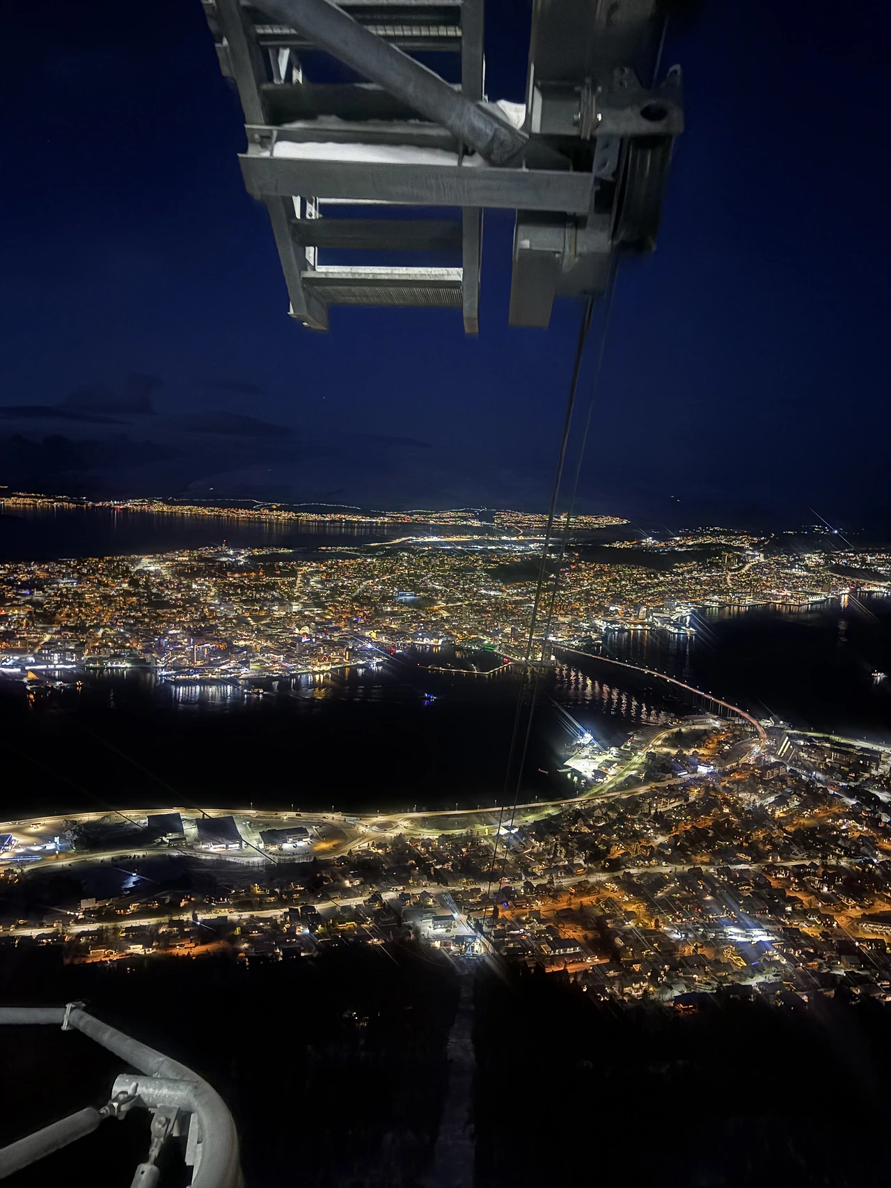 전망대는 트롬쇠 섬이 아닌 맞은편에 위치한 곳에 있다. 날이 좋았다면 전망대를 걸어올라가는 방법이 있었겠지만 겨울에는 그 길은 통제하여 케이블를 탔다. 예약을 하지 않고 가도 괜찮지만 가격대가 조금 있다. 바람이 불어 조금 흔들렸지만 점점 높이 올라가지면서 보여지는 트롬쇠 전경이 보였다.
