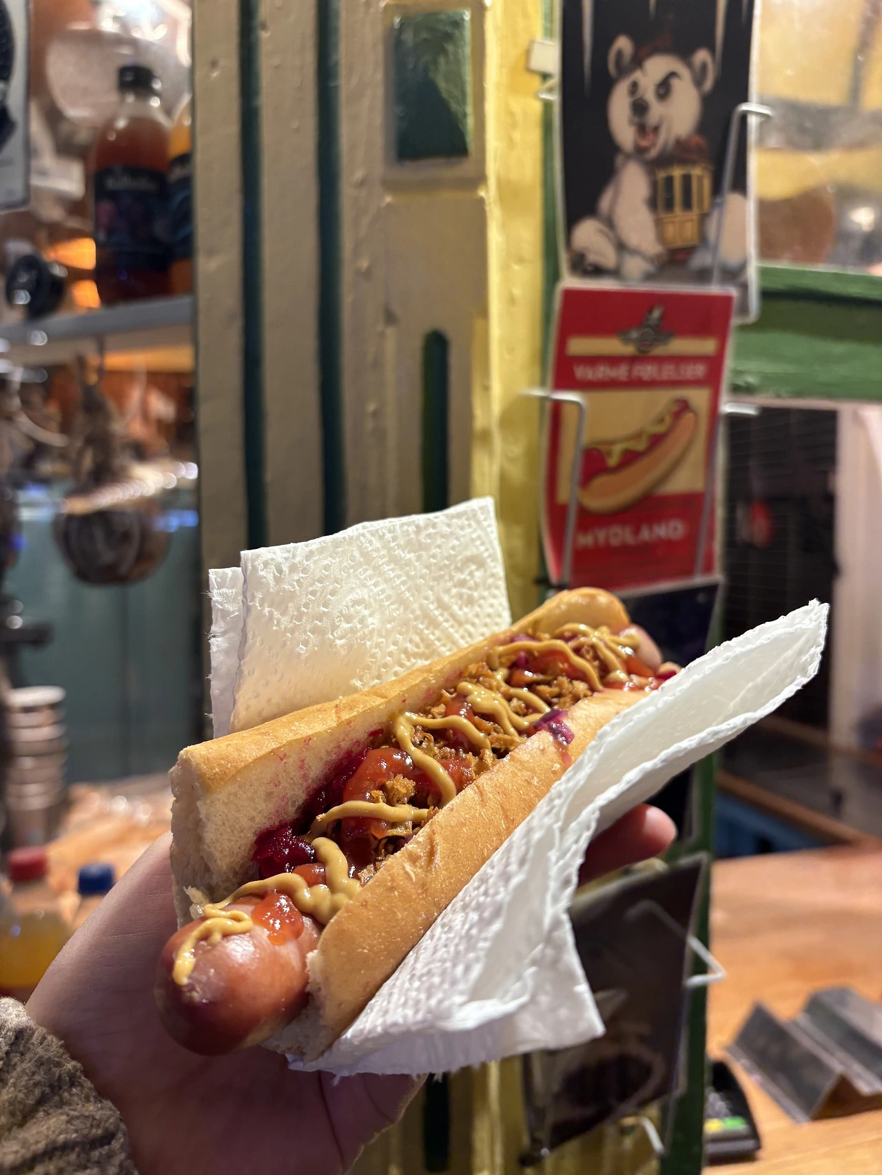 이 지역에 추천하는 음식은 순록 핫도그이다. 가장 작은 가게에서 파는 핫도그인데 너무 줄이 길지만 주문과 음식을 받는 시간이 짧아서 오래 기다리지 않았다. 순록 고기와 소고기의 혼합이지만 여전히 소 외의 다른 고기향과 맛이 나지만 역하지 않아서 잘 먹었다. 순수 순록 고기는 아니지만 한번쯤은 시도할만하다. 당연 가격도 착하다.