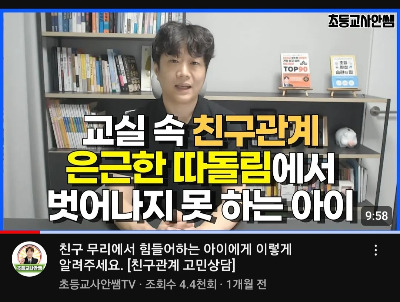 아들문제로 고민이 많았다. 우리아이에게 어떻게 얘기해줘야 할지. 고학년 아이들의 관계에서 부모가 해 줄 수 있는 일이 많지 않다는데, 부모인 나는 무엇을 할 수 있는지. 길에서 스치는 중고등학생을 붙잡고 고민 상담을 하고 싶을 정도로 절박한 마음이었다. 그러던 중 아이의 전반적인 학교생활에 도움을 받고자 현직 초등학교 교사분이 운영하는 유튜브 채널을 구독했던 게 기억이 났다. 이분이라면 내게 도움을 줄 수 있지 않을까? 담임선생님께서는 아무래도 학교와 반 친구들과의 이해관계가 얽혀 있기 때문에 오직 우리 아이의 문제 해결에 초점을 맞춰 상담해 주는데 한계가 있을 수 있다고 생각하던 중이었다.