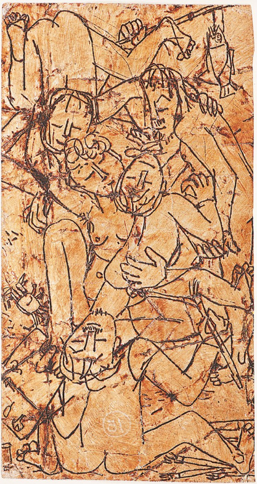 이중섭의 가족시리즈에는 가족들이 조그마한 사각 프레임에 홀딱 벗고 엉겨있는 모습을 종종 볼 수 있다.