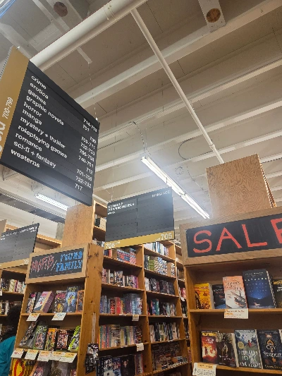 Powell's Citi of Books은 미국 와서 가본 서점 중에 규모면에서 압도적이다. 한 블럭 전체를 차지한다지. 과연 미국최대규모의 독립서점다웠다. 분류는 도서관식인 줄 알았는데, 서점 자체적으로 색으로 주제 분류해 놓은 게 인상적이다. 새책, 중고책, 희귀본 모두 취급한다. 굿즈도 많고. 독립서점 특유의 손때 묻은 듯한 빈티지풍 서가와 말끔히 정돈되지 않은 헐렁한 감성도 더해져 있다. 독자와 서점직원의 서평 띠지들이 줄줄이 달려있어서 생각 공유도 하고. 언젠가는 나도 이런 서점 경영해서 부자 되고 싶단 뜬 생각도 잠시 하고(독립서점으로 부를 꿈 꾸다니, 택도 없는 소리). 책을 더 많이 읽던 대학 다닐 때는 안 그랬는데, 오히려 요즘은 책과 관련된 일을 하고 싶다는 소심한 장래 희망 같은 게 생겼다. 독립서점 파트타임도 나쁘지 않은 것 같고. 가 이 아주머니를 써줄까마는.