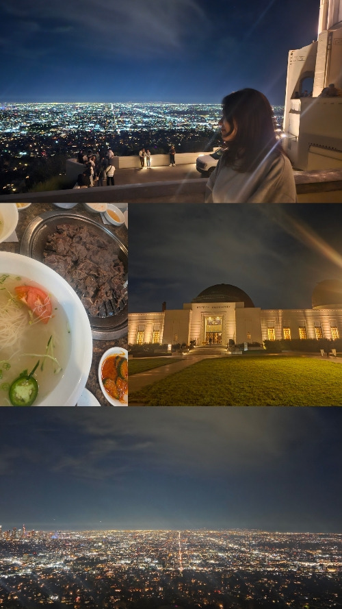 감격적인 첫 식사 후에는 그리피스 천문대(Griffith Observatory)에 들러 LA의 야경을 둘러보았다. 10시간가량의 운전으로 몸이 지친 탓인지 야경이 주는 감동은 다소 흐릿했지만, 피곤함 속에서도 왼편 얼굴 샷 하나를 남기는 것은 잊지 않았다. 야경 명소 특유의, 나는 맡아본 적도 없는 페로몬의 기운이 공기 중에 녹아있다. 난 안 보련다. 미국이라 그런지 거리낌이 없네. 야경, 페로몬, 로맨틱으로 이어지는 시퀀스는 인류의 커먼센스 같은 것이라는, 그리니치 천문대 방문소감이다.