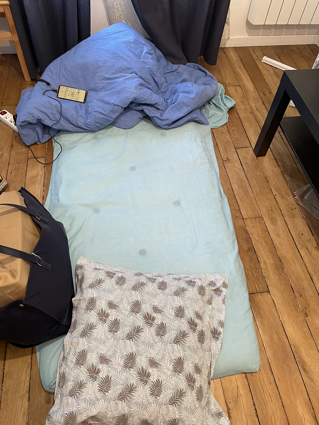 그걸 모르고 우리는 이 숙소에 3인을 예약했고, 그 결과 우리에게 주어진 침구는 2인이 쓸 수 있는 더블침대 하나와 중간 바닥이 푹 꺼진 여행용 빈백이었다.