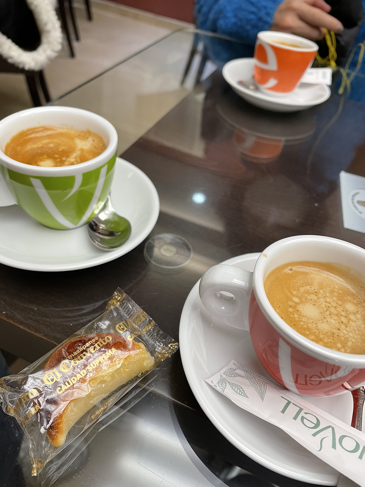 카페에서 우리는 가이드가 제공해준 스페인의 커피 꼬르따도와 톨레도의 수녀님들이 직접 만든다는 간식 마사판을 딱 한 개 사서 나눠 먹었다.