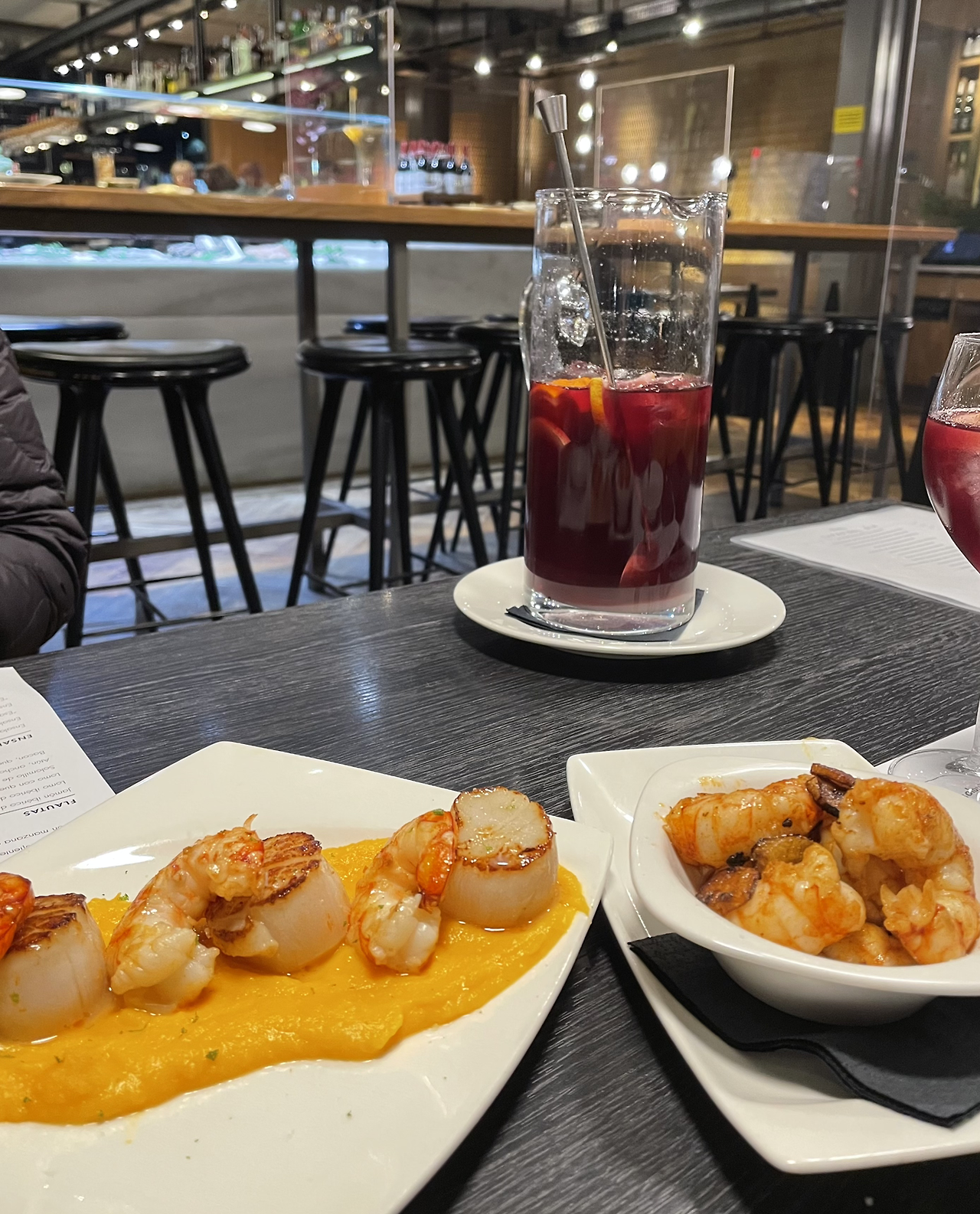 나는 네 종류의 타파스와 샹그리아를 시켰다.
