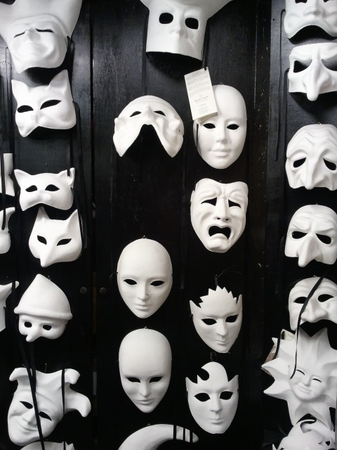 베네치아에는 가면이 유명하다. 가면무도회에서 쓰던 가면들. 갖가지 모양과 색으로 눈을 현혹한다. 눈만 가리는 매혹적인 가면, 코를 길쭉하게 빼서 광대들이 주로 쓰던 가면, 얼굴 전체를 가리는 가면, 여행 당시 미국에서 일어나는 월가 시위 때 사용되던 가이 포크스의 가면도 찾아볼 수 있었다.