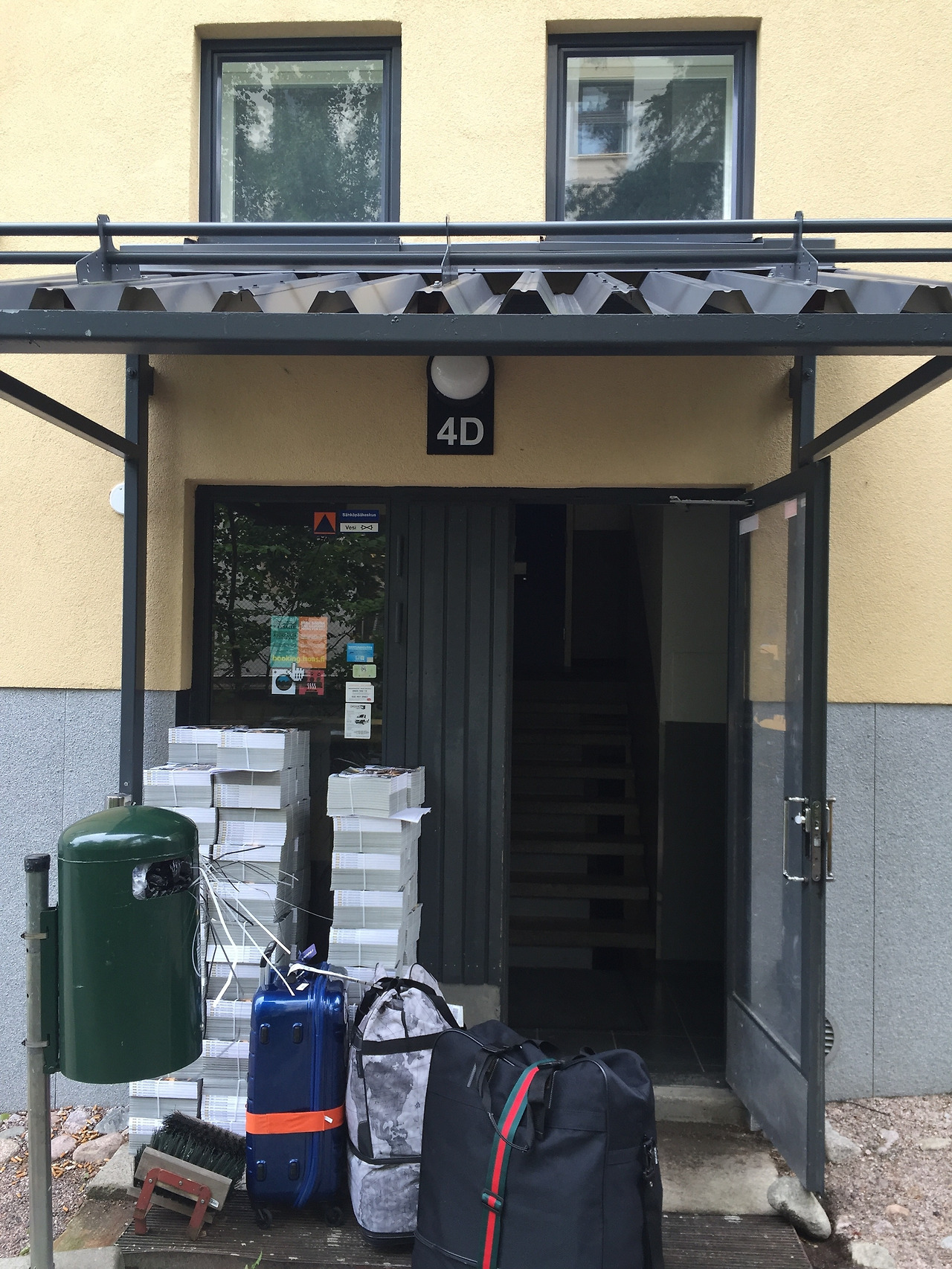 총 64Kg에 육박하는 세 개의 짐을 공항 카트로도 감당할 수 없었다. 결국 나는 택시를 타기로 하였다. 택시를 타고 학생 임대 주택 앞으로 가면 핀란드인 튜터를 만날 수 있었다. 학교에서 외국인 신입생을 위해 배정해준 튜터가 나의 집 키를 가지고 올 예정이었다. 내가 사는 집은 아파트에서 3층이었고 엘레베이터가 없었다.