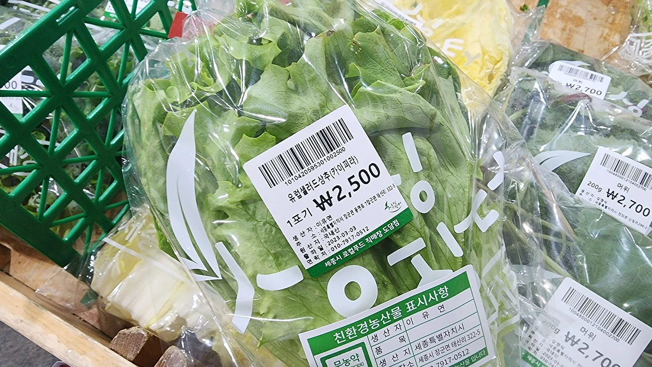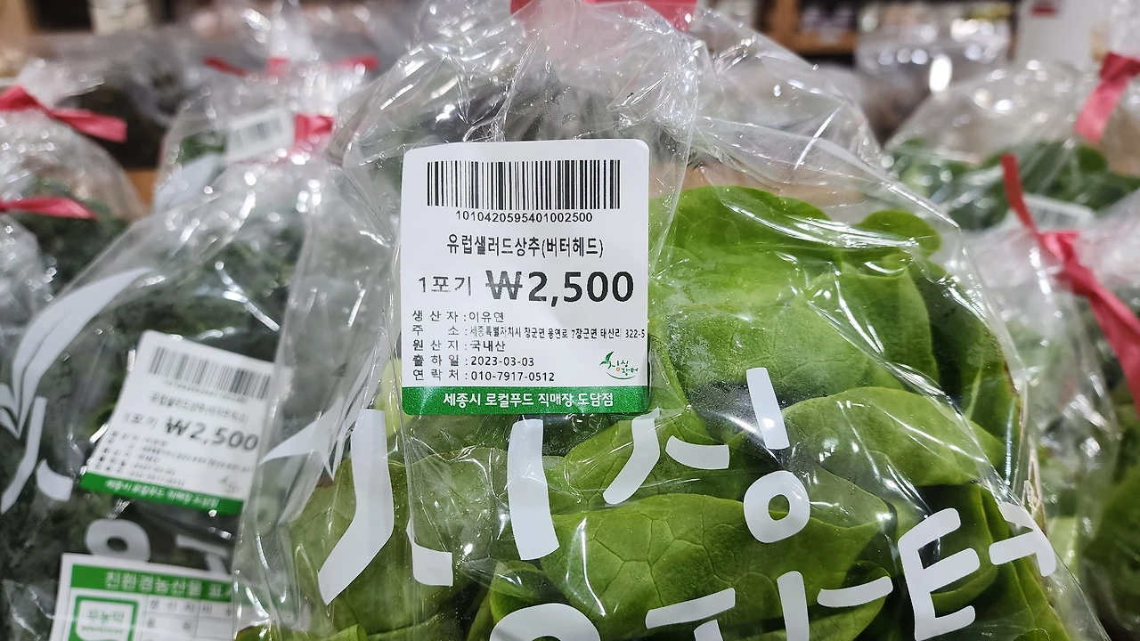 로컬푸드를 판매하는 싱싱 장터에 가 보니 다양한 양상추가 싱그러움을 뽐내며 선택을 기다린다.