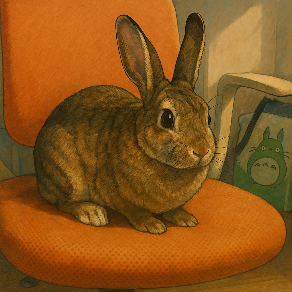 갈색토끼 여름이는 작은 방에 있는 오렌지색 의자