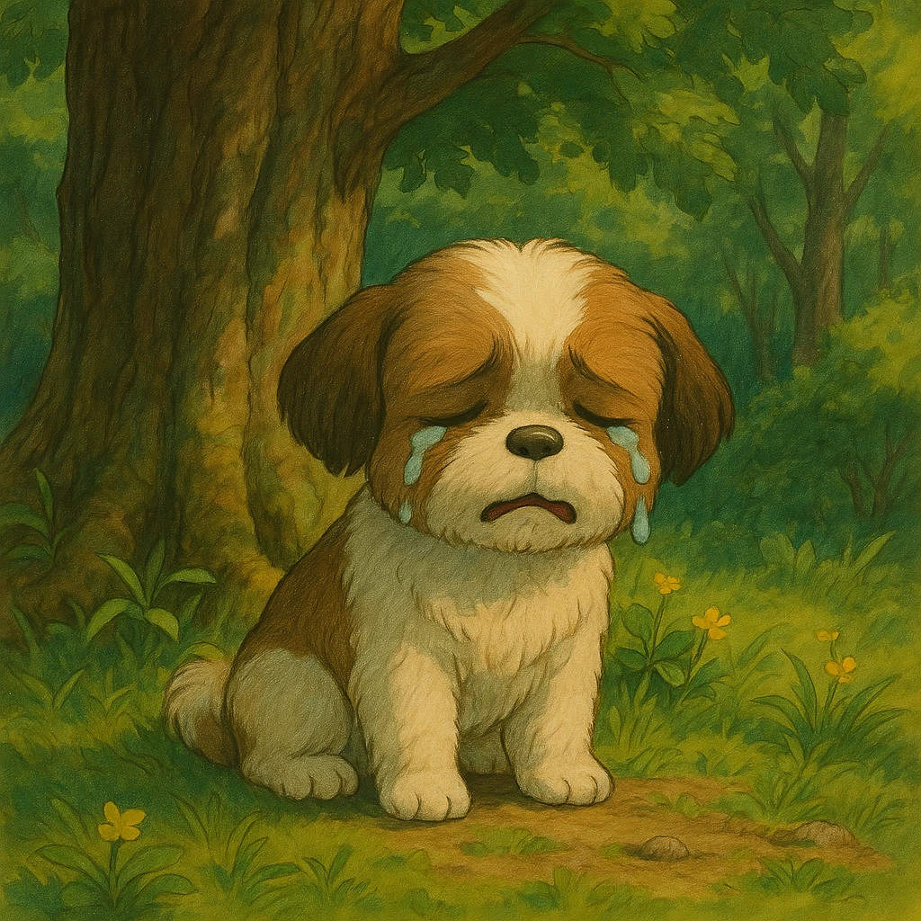 작은 귀에 복슬복슬한 털, 동그란 눈에 눈물이 그러그렁한 작은 강아지가 웅크리고 울고 있었어요.